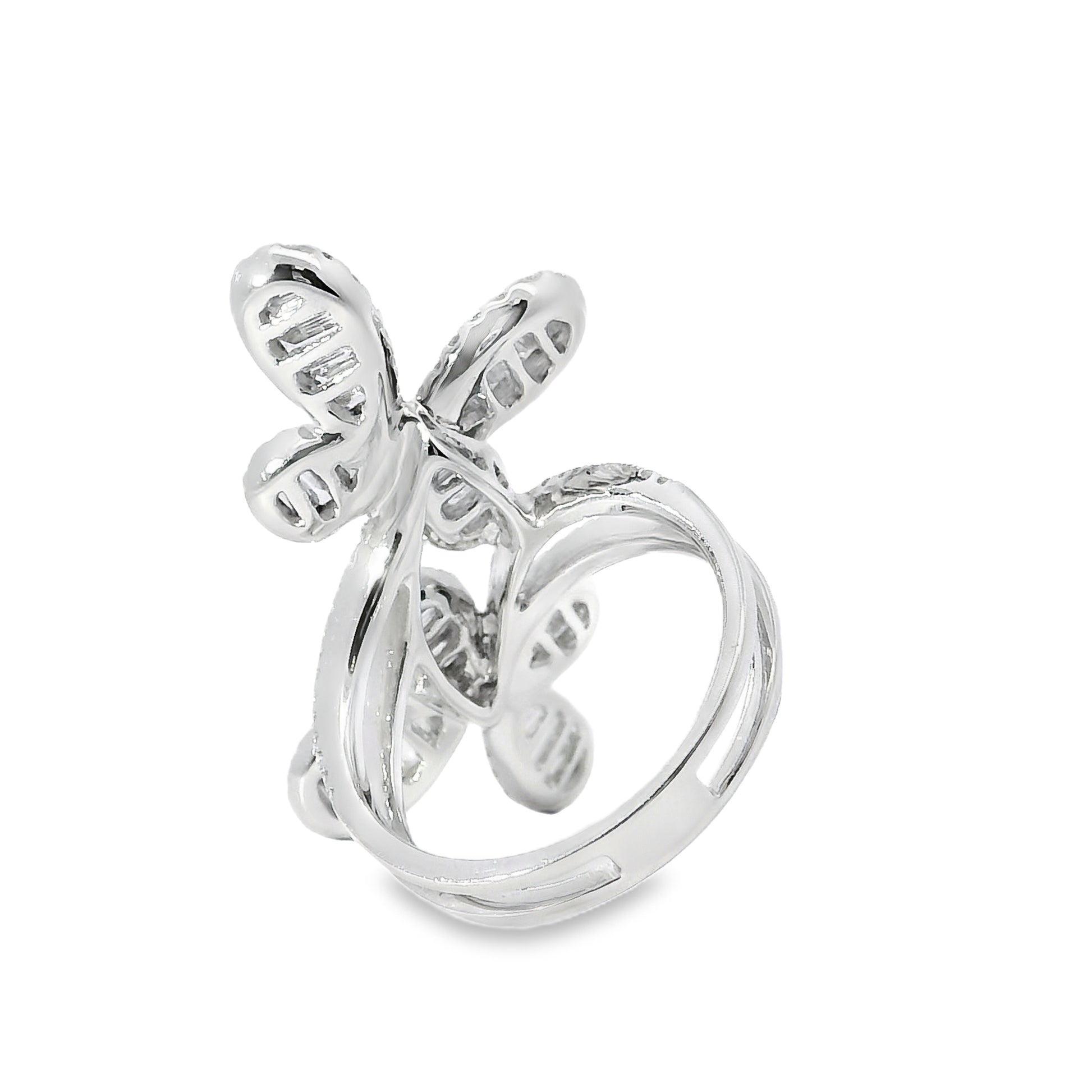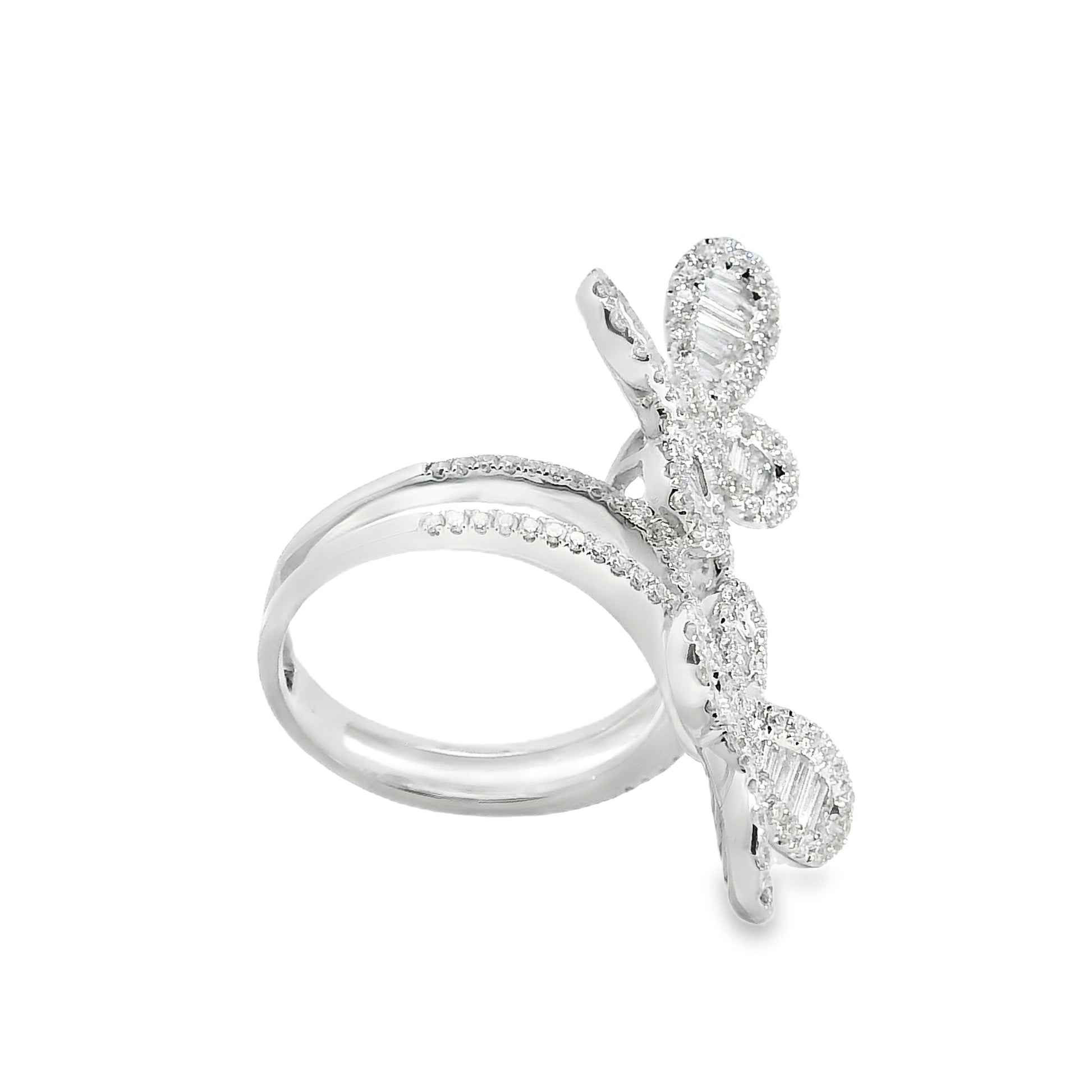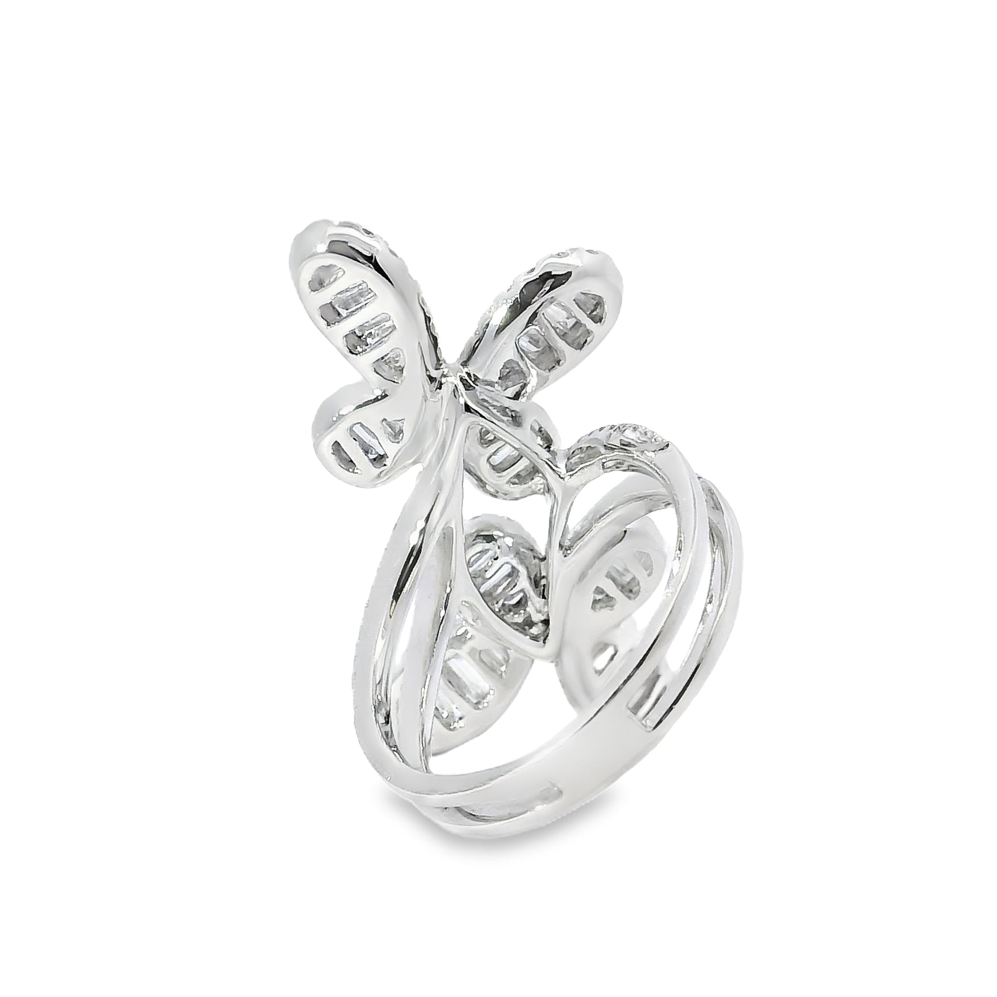 18k White Gold 1.67ct Natural Diamond Double Butterfly Ring