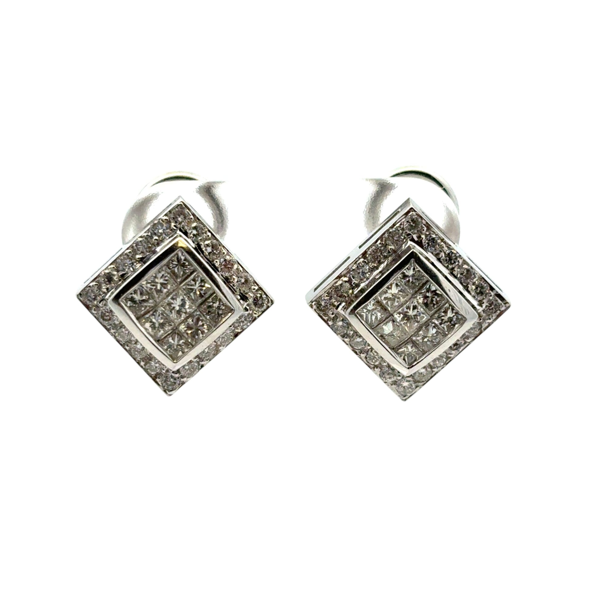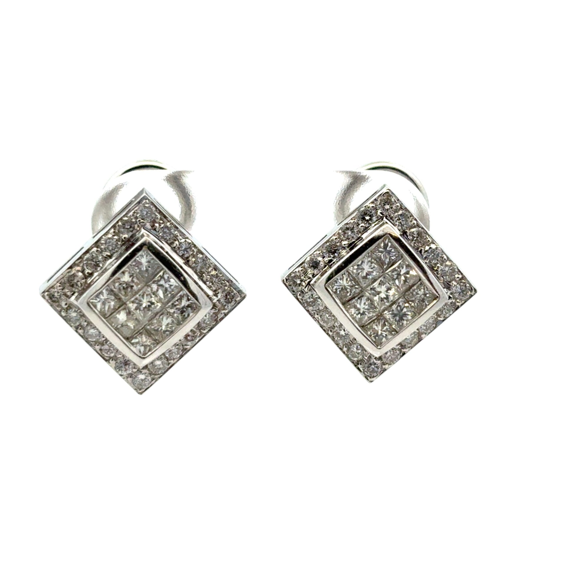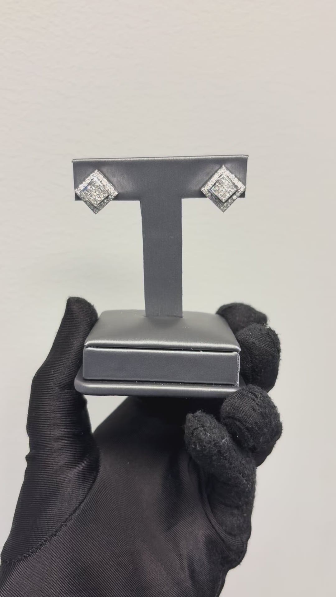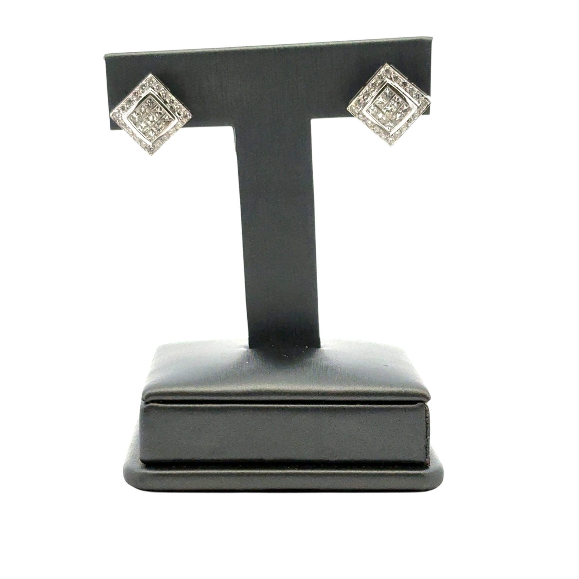 18k White Gold Rhombus approx. 0.82ctw Square Diamond Earrings