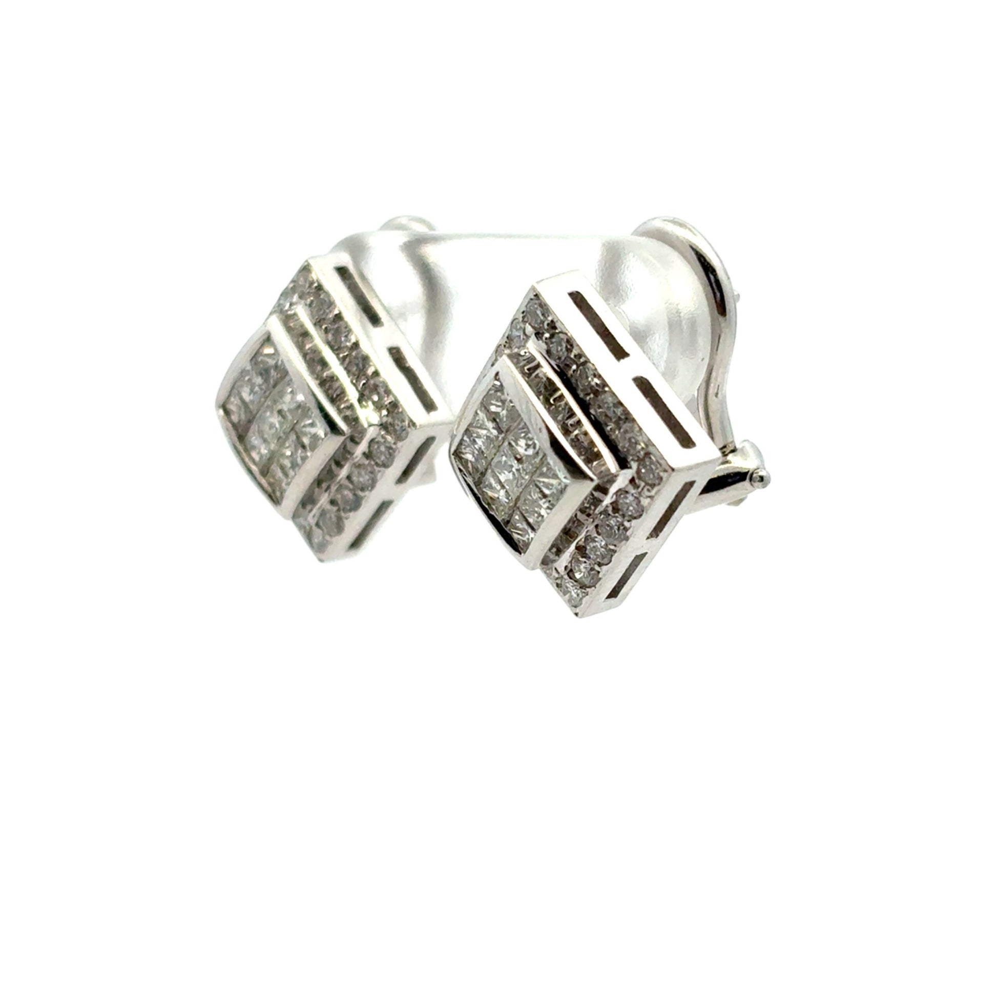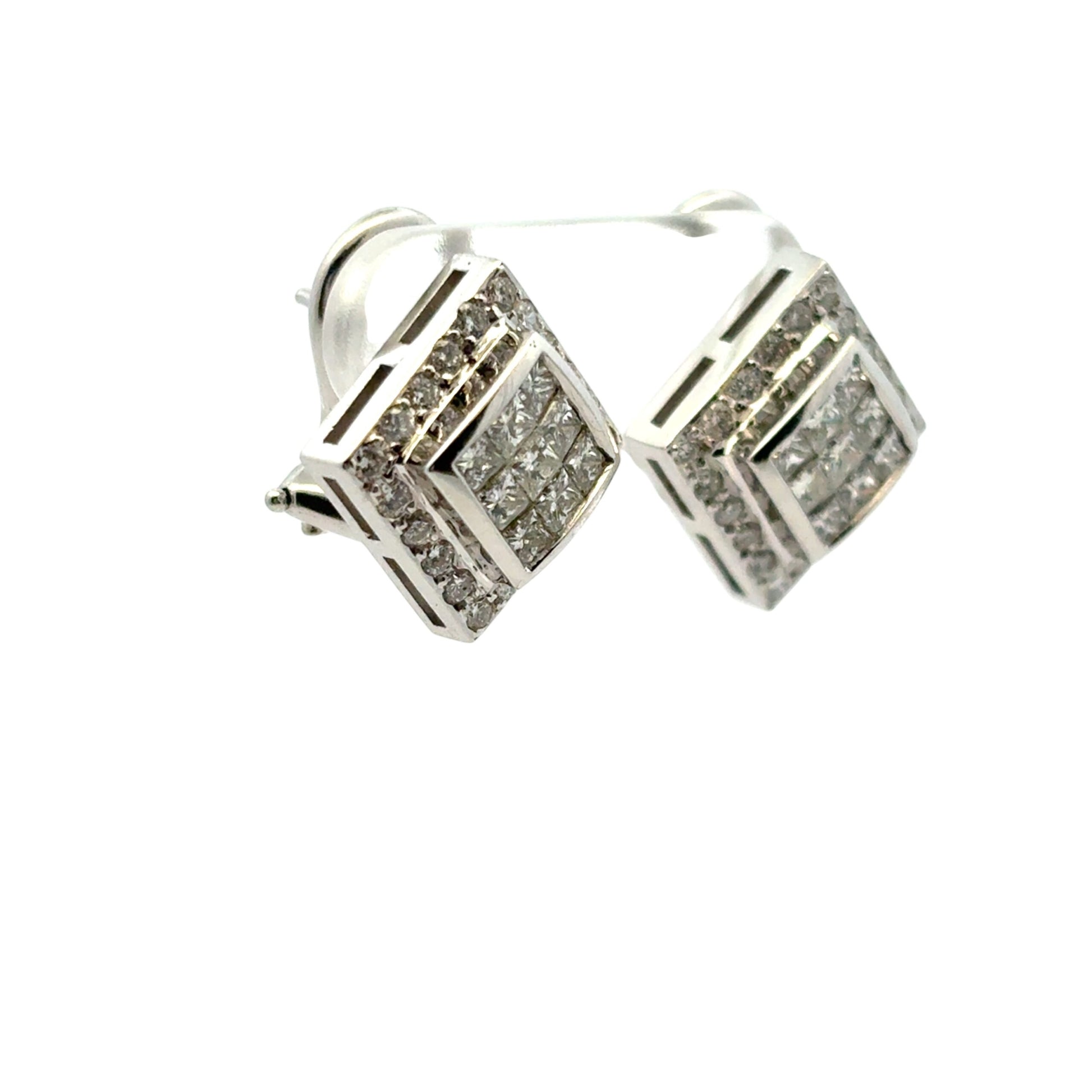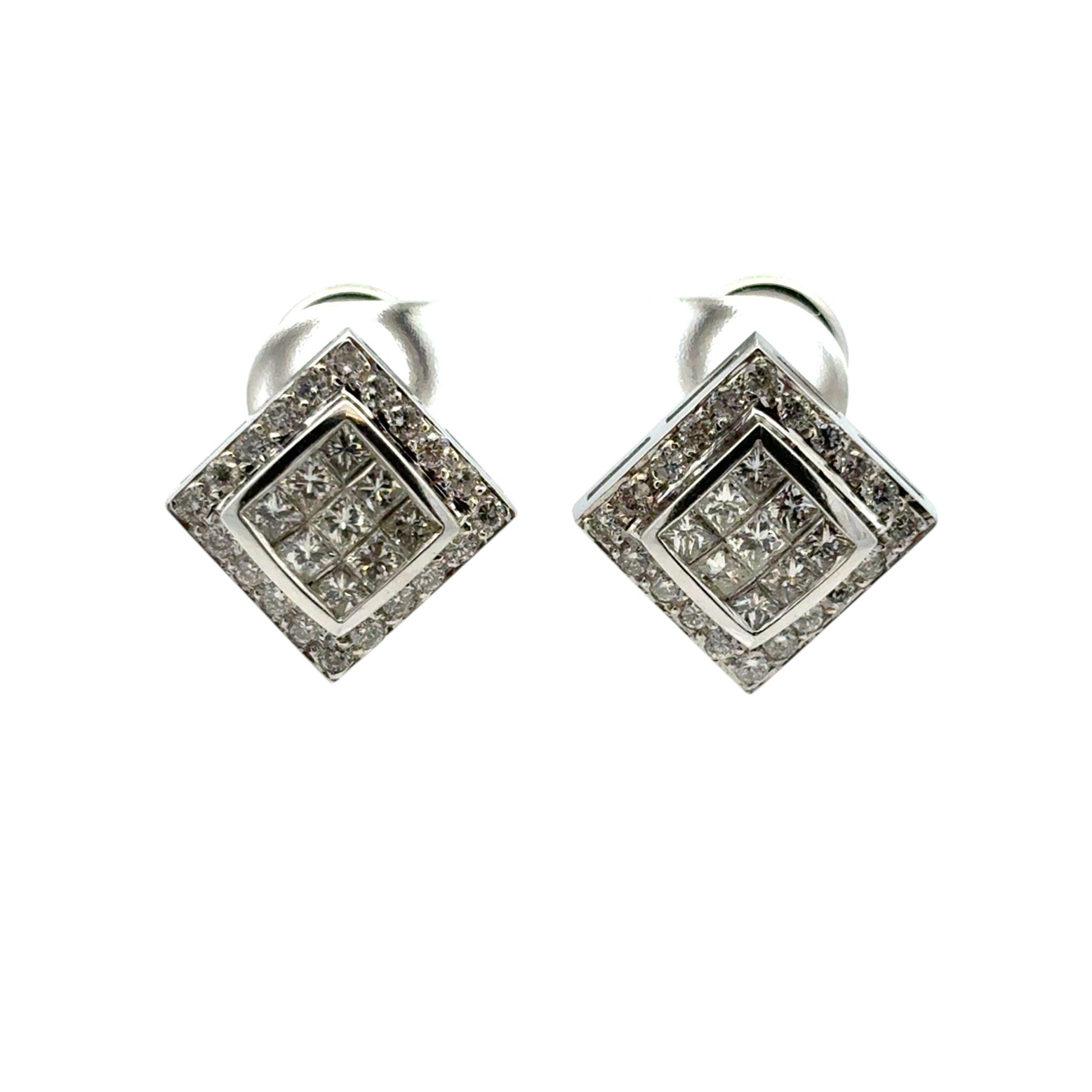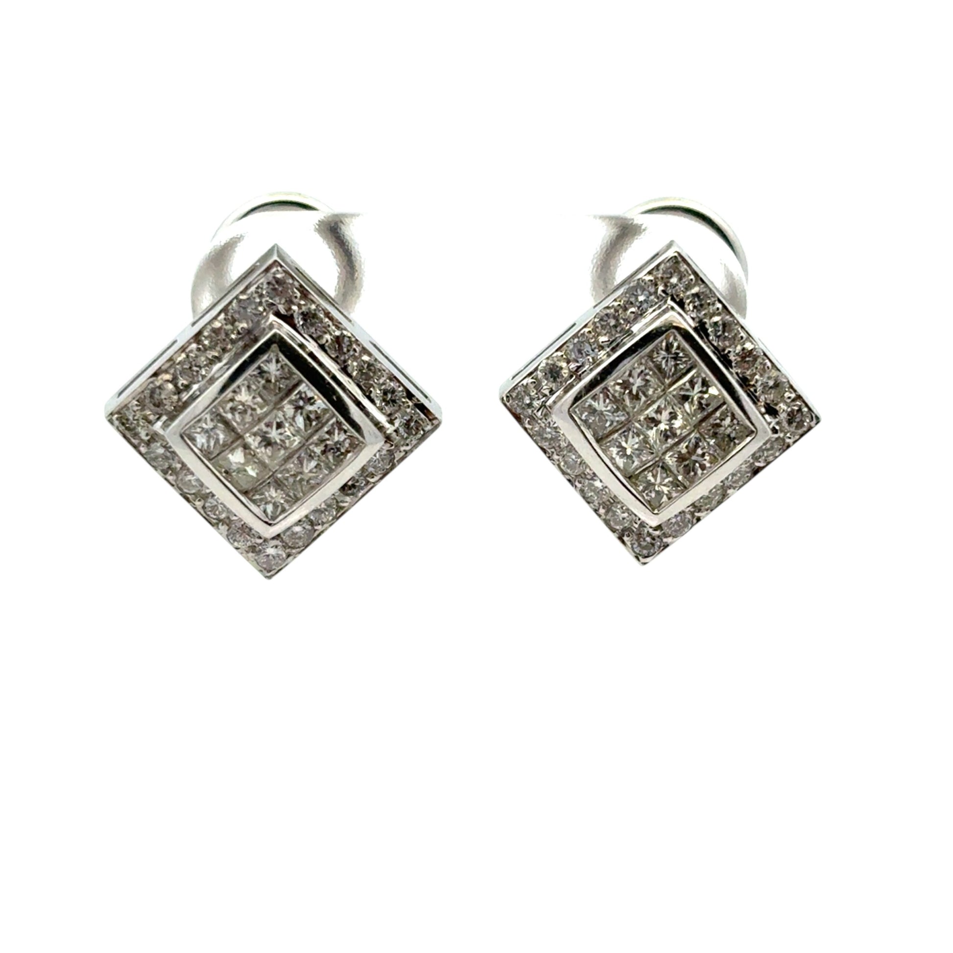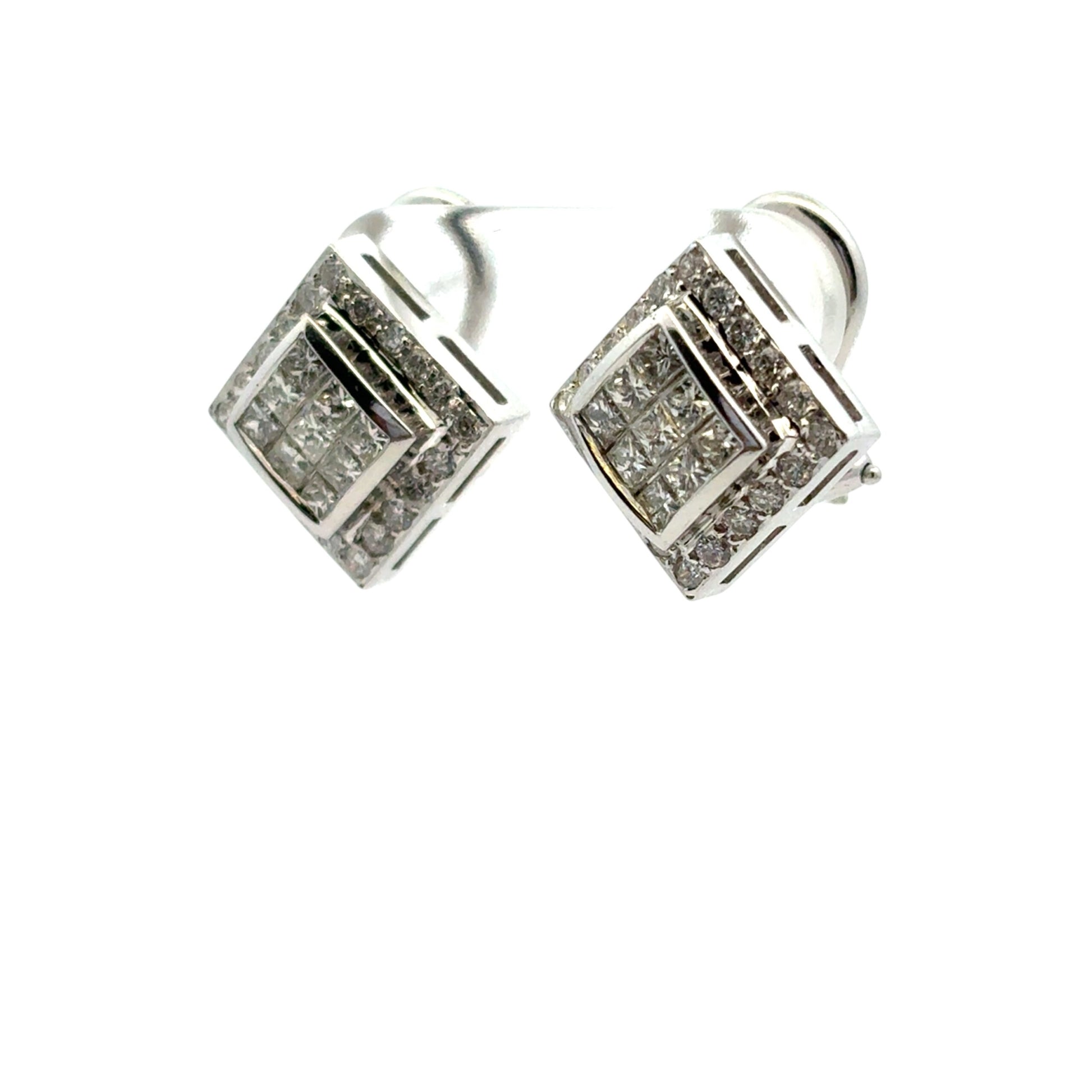 18k White Gold Rhombus approx. 0.82ctw Square Diamond Earrings