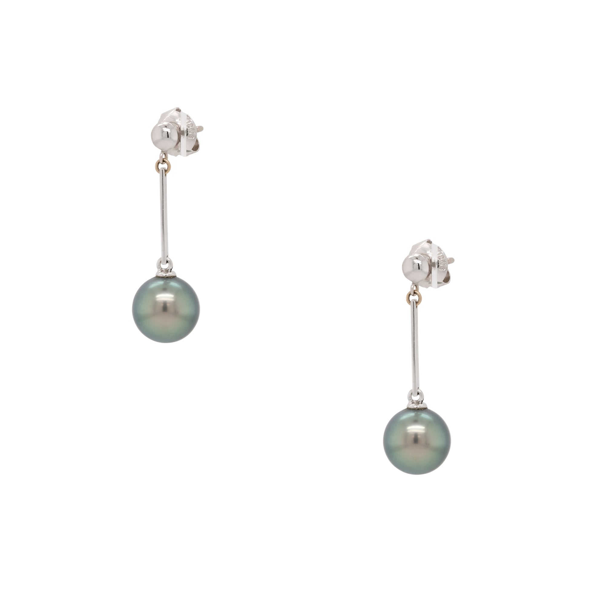 18k White Gold Tahitian Pearl Dangle Earrings