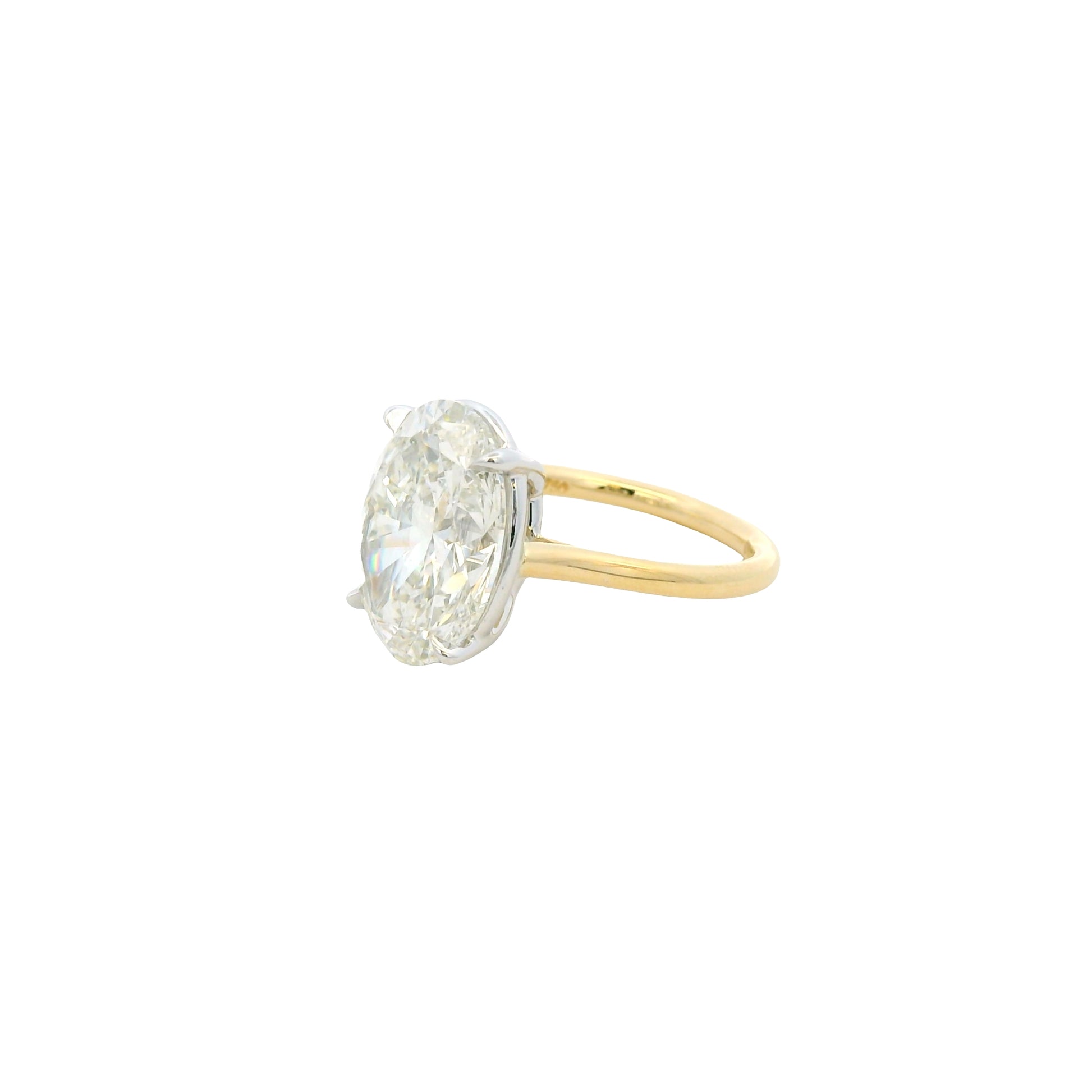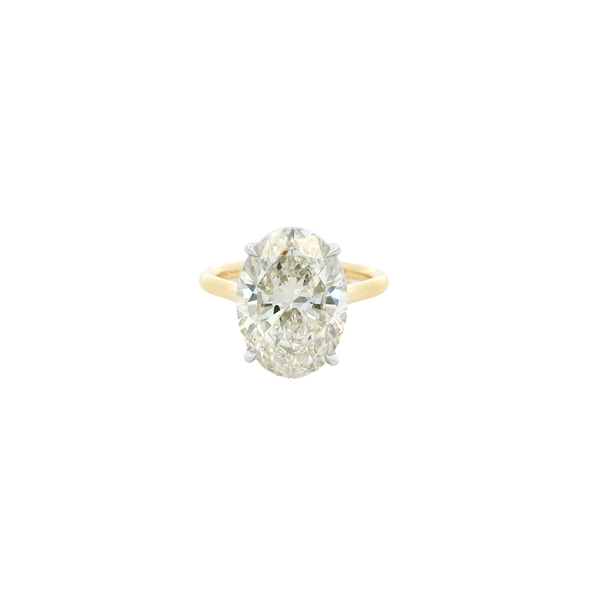 This exquisite 18k Yellow Gold Oval Brilliant Cut Diamond Ring showcases a breathtaking GIA Certified 7.01 carat natural diamond, masterfully set to highlight its exceptional brilliance and elongated silhouette. The center stone is graded I in color with VS1 clarity, offering a beautiful balance of size, fire, and quality.