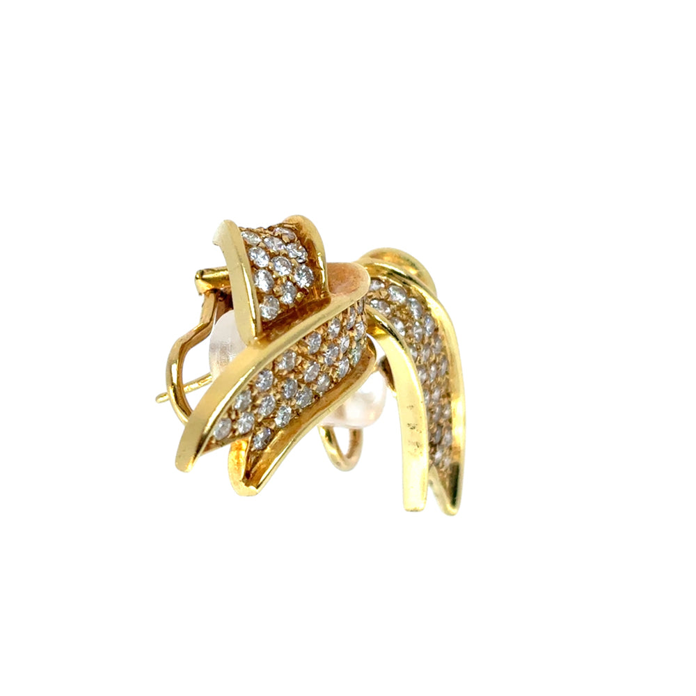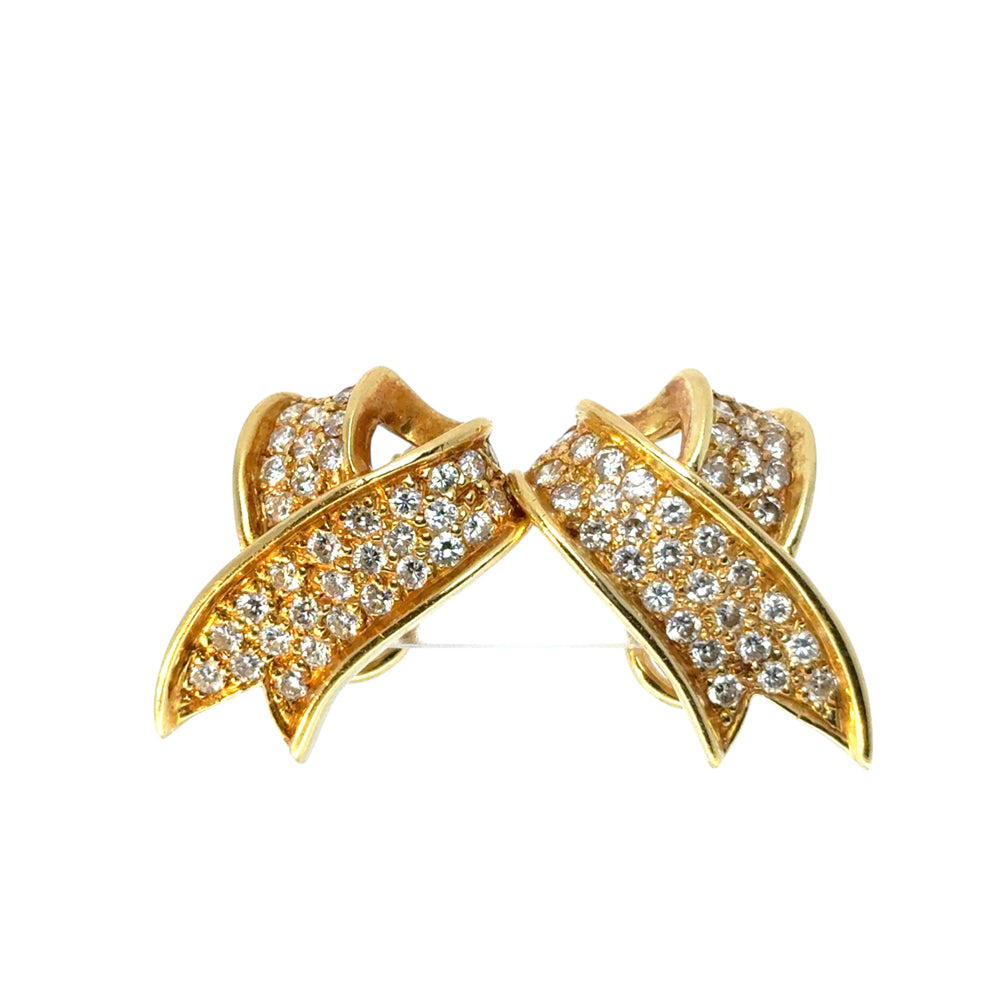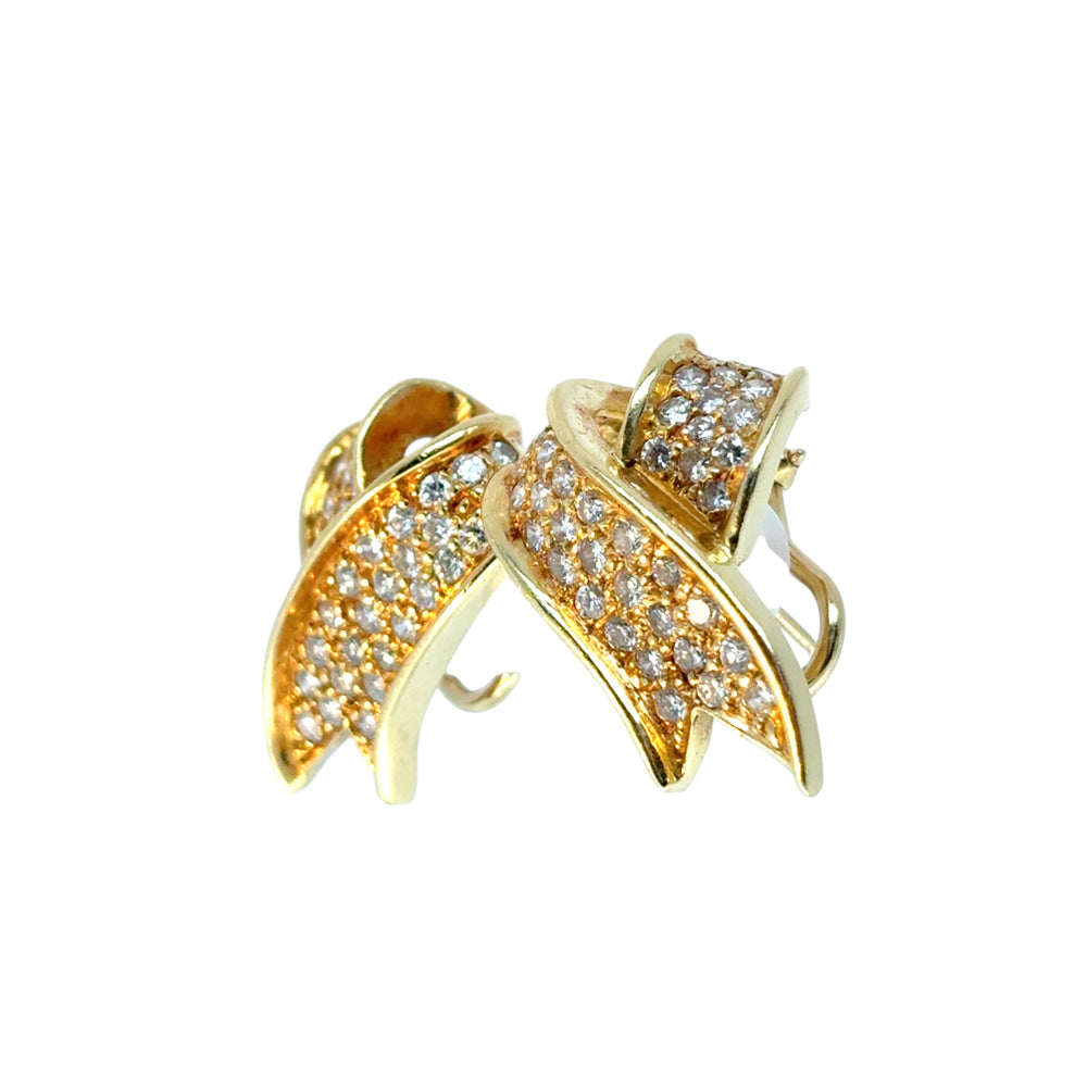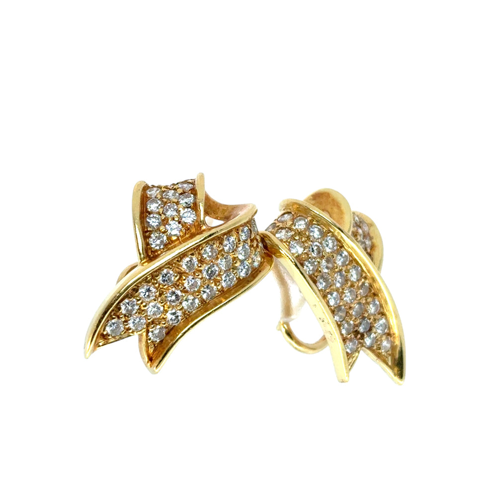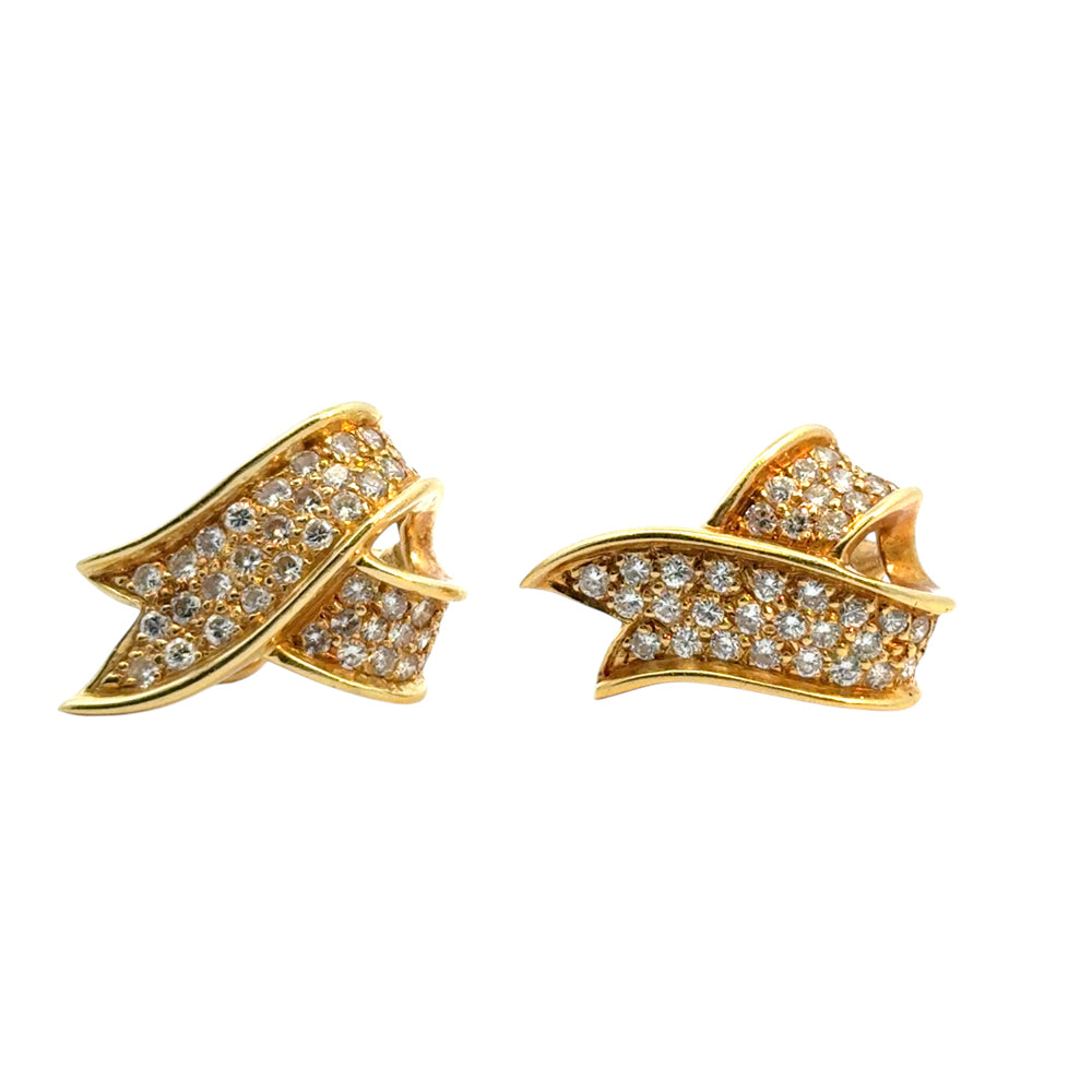Turn heads with timeless elegance in these exquisite 18k Yellow Gold Diamond Ribbon Earrings. With a graceful, flowing ribbon design and approximately 1.17 carats of brilliant diamonds, these earrings shimmer with every movement, capturing light — and attention — from every angle.