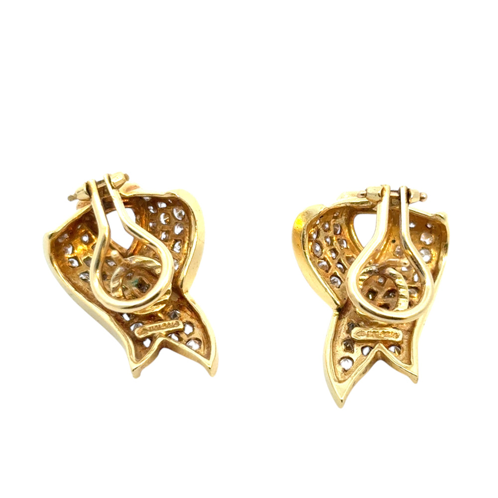 These stunning Gold Diamond Ribbon Earrings are in excellent condition and are ready to ship!