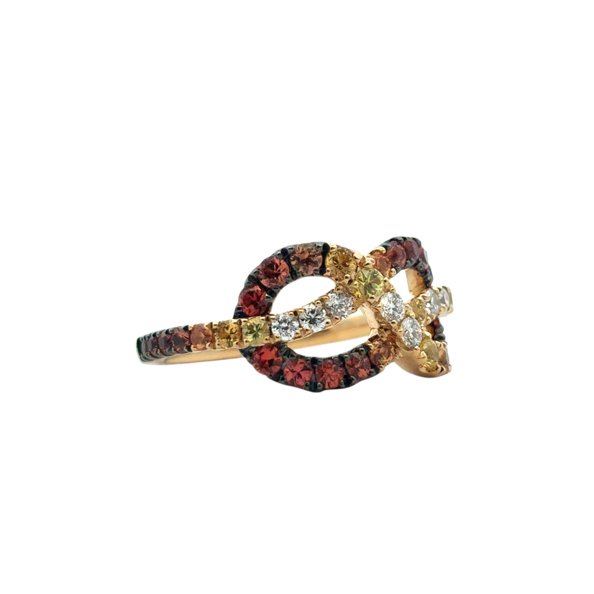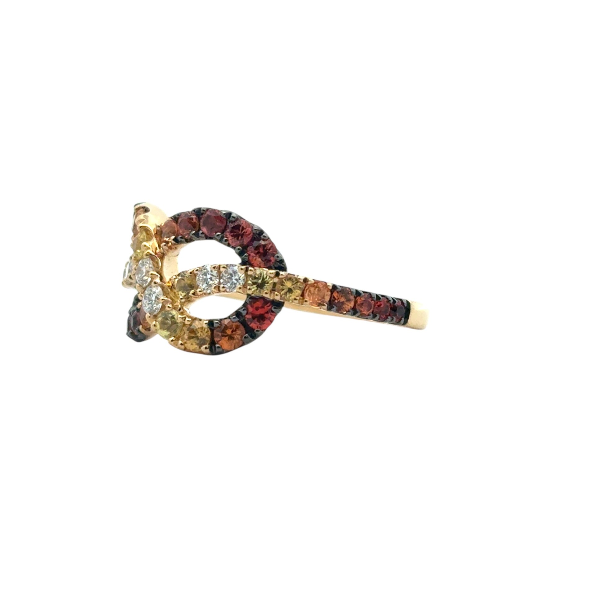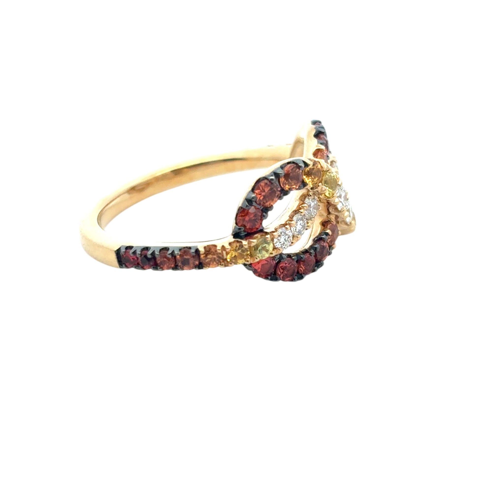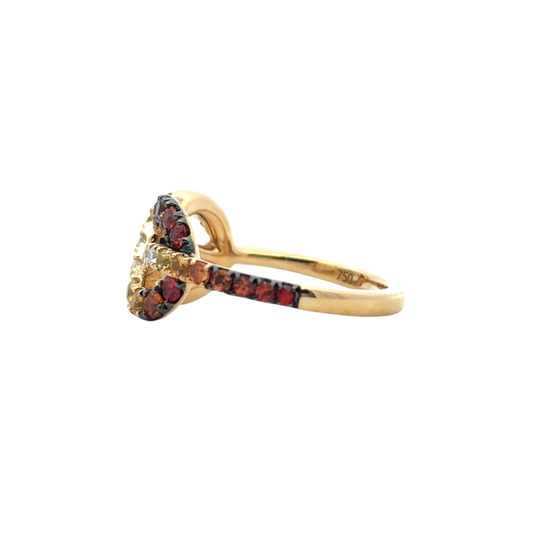 Make a bold and unforgettable statement with this eye-catching 18k Yellow Gold Bowtie Ring, set with a dazzling combination of natural white and orange diamonds.