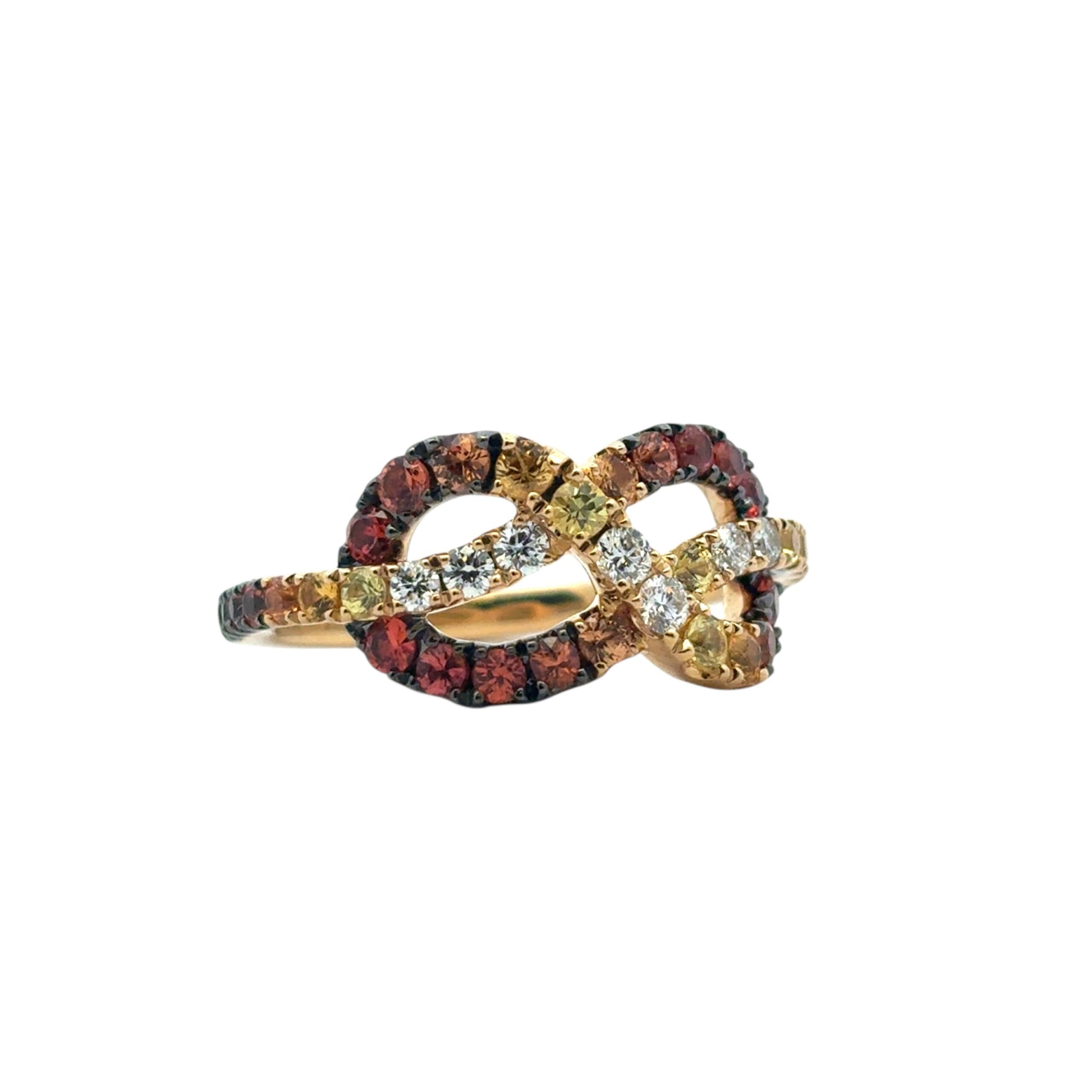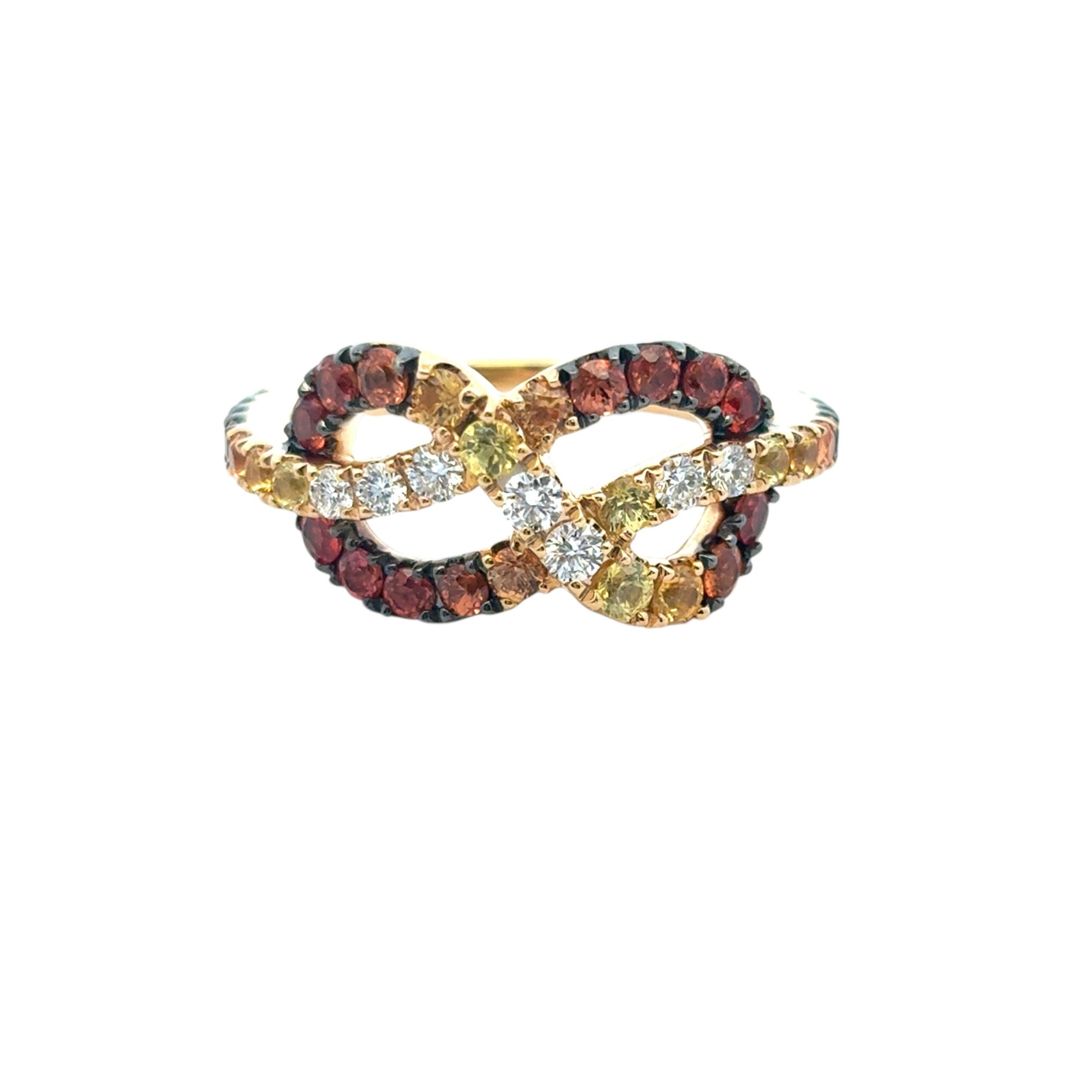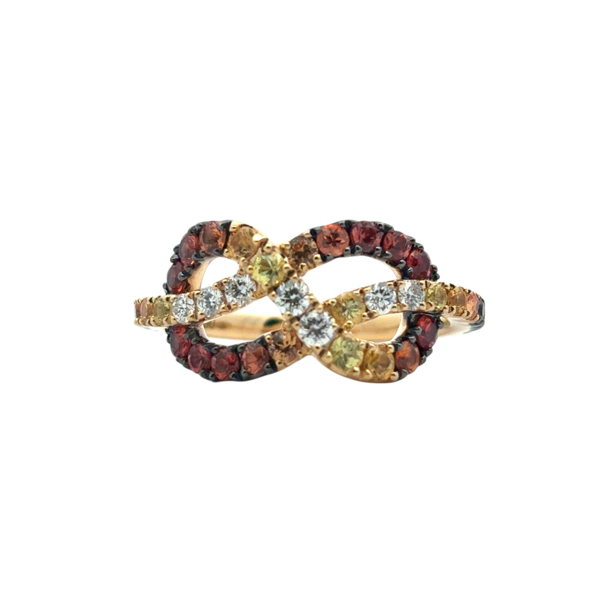 Make a bold and unforgettable statement with this eye-catching 18k Yellow Gold Bowtie Ring, set with a dazzling combination of natural white and orange diamonds.