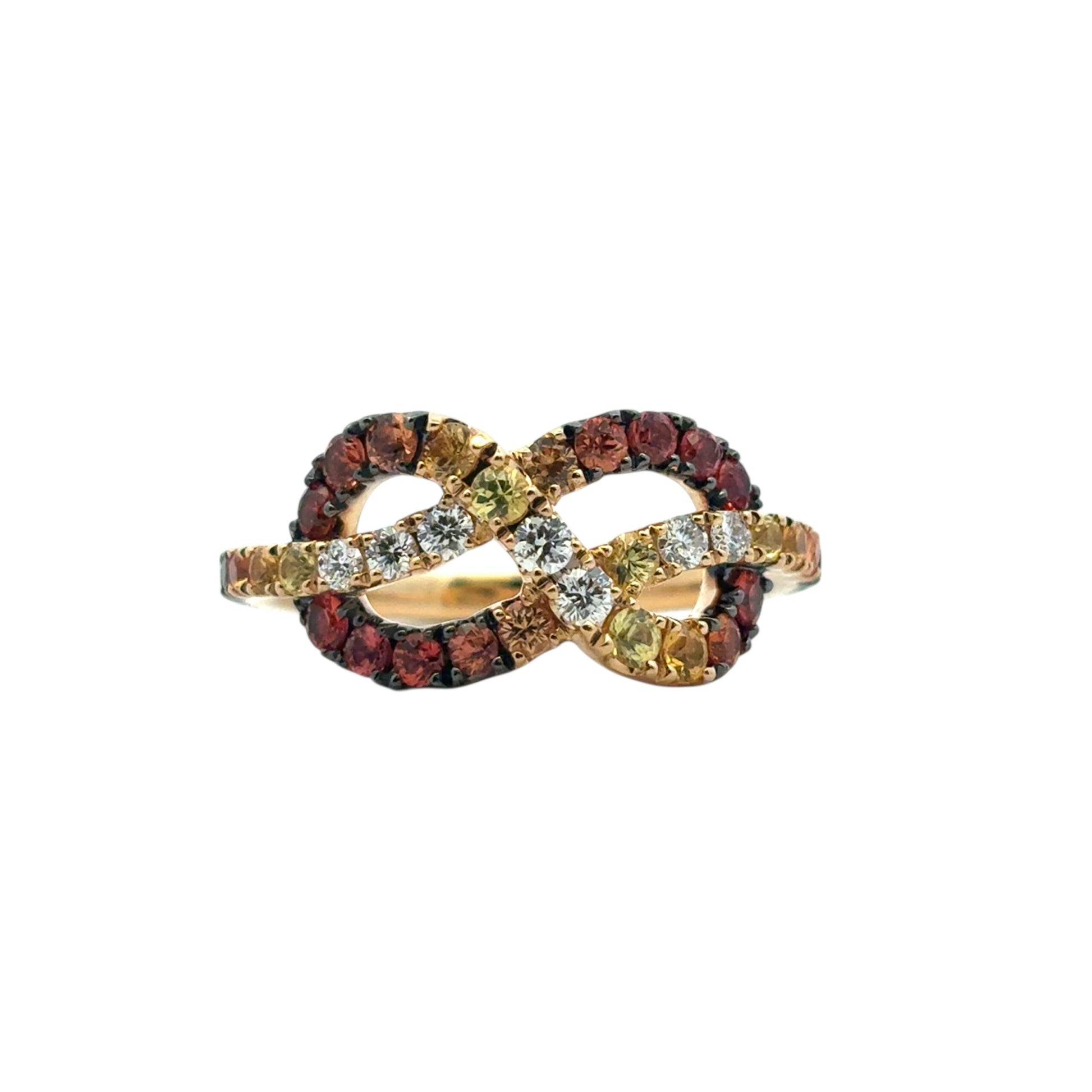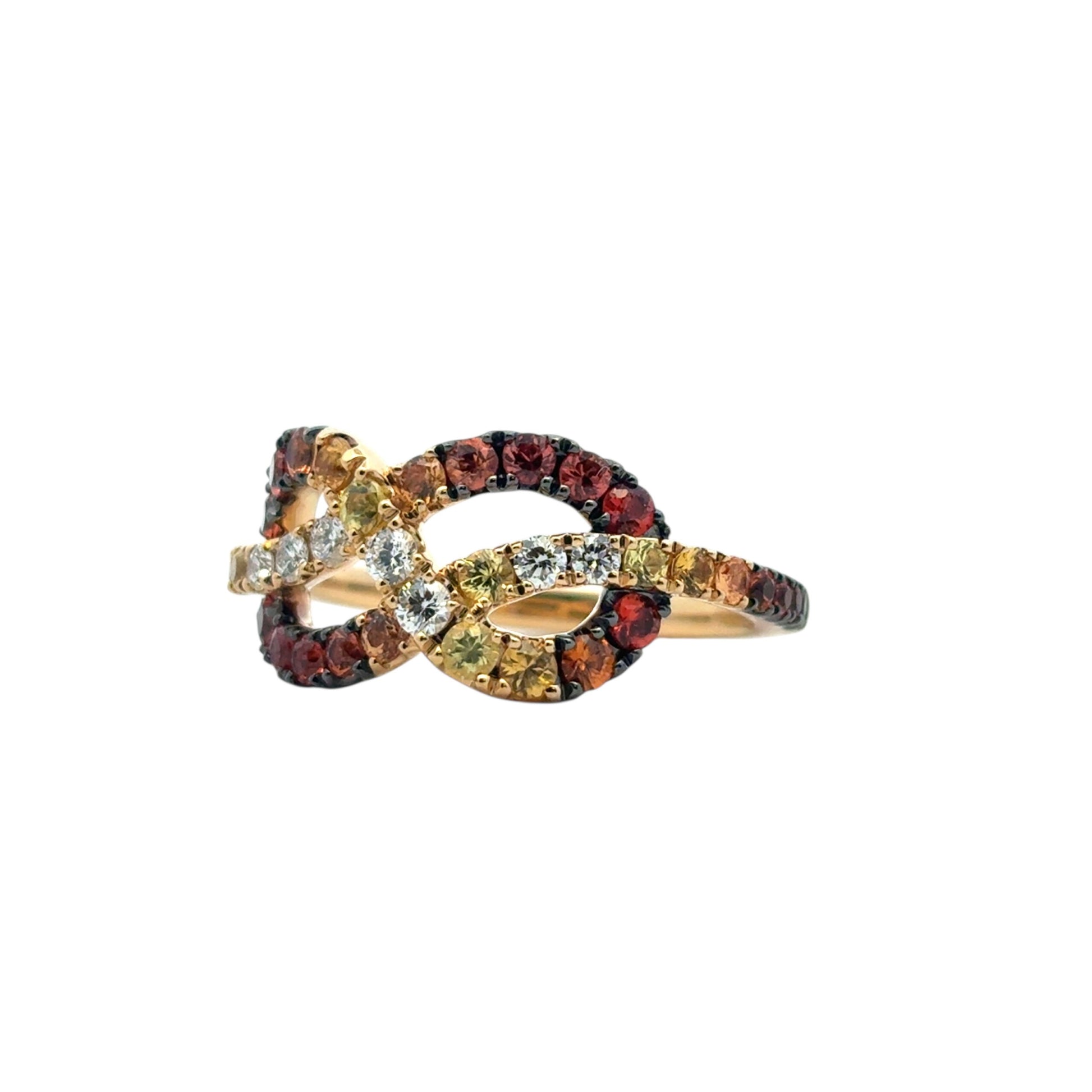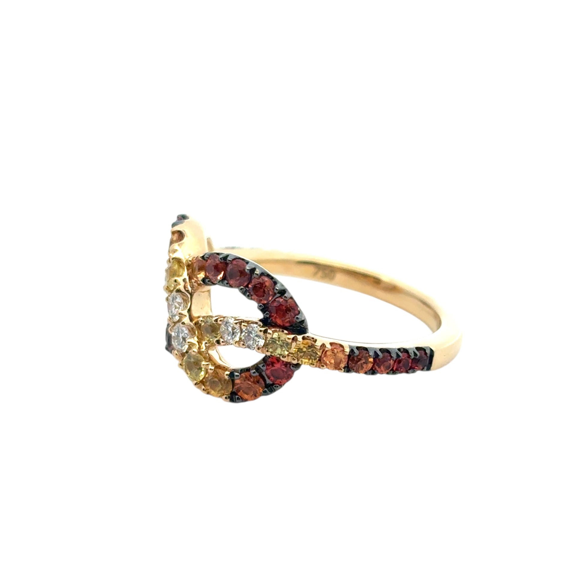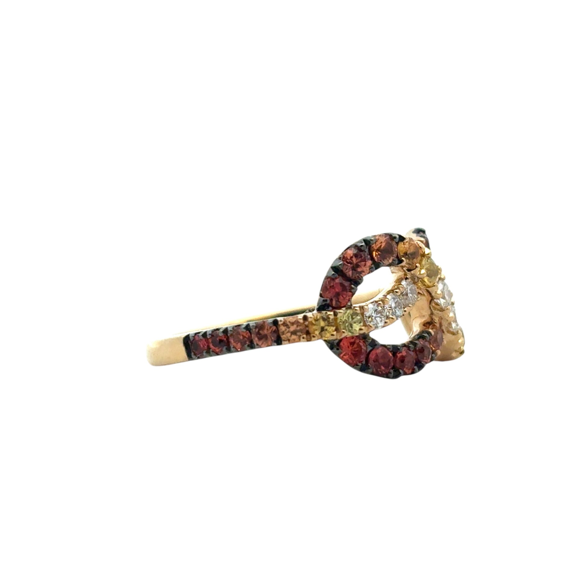 Make a bold and unforgettable statement with this eye-catching 18k Yellow Gold Bowtie Ring, set with a dazzling combination of natural white and orange diamonds.
