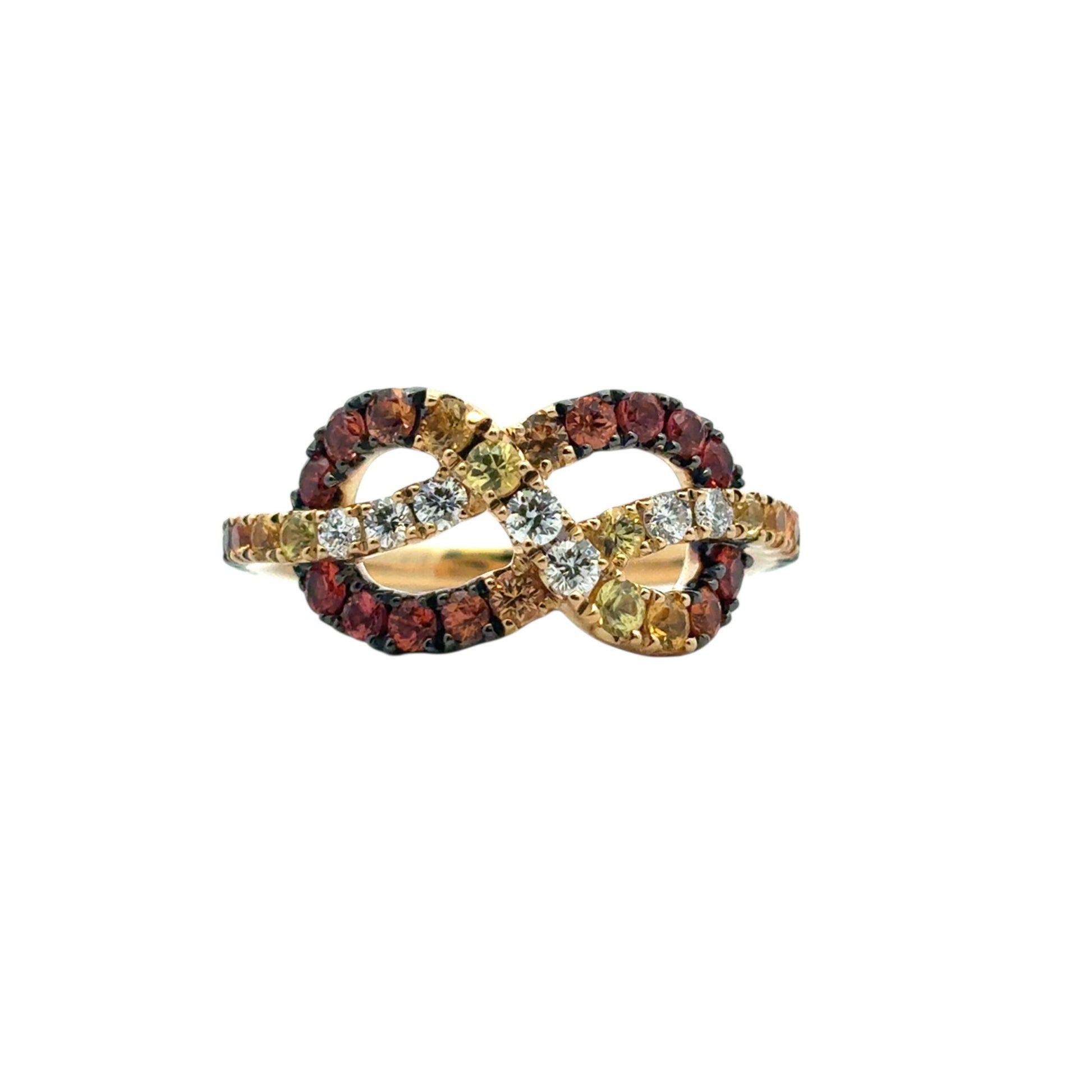 18k Yellow Gold Diamond Orange Stone Bowtie Ring