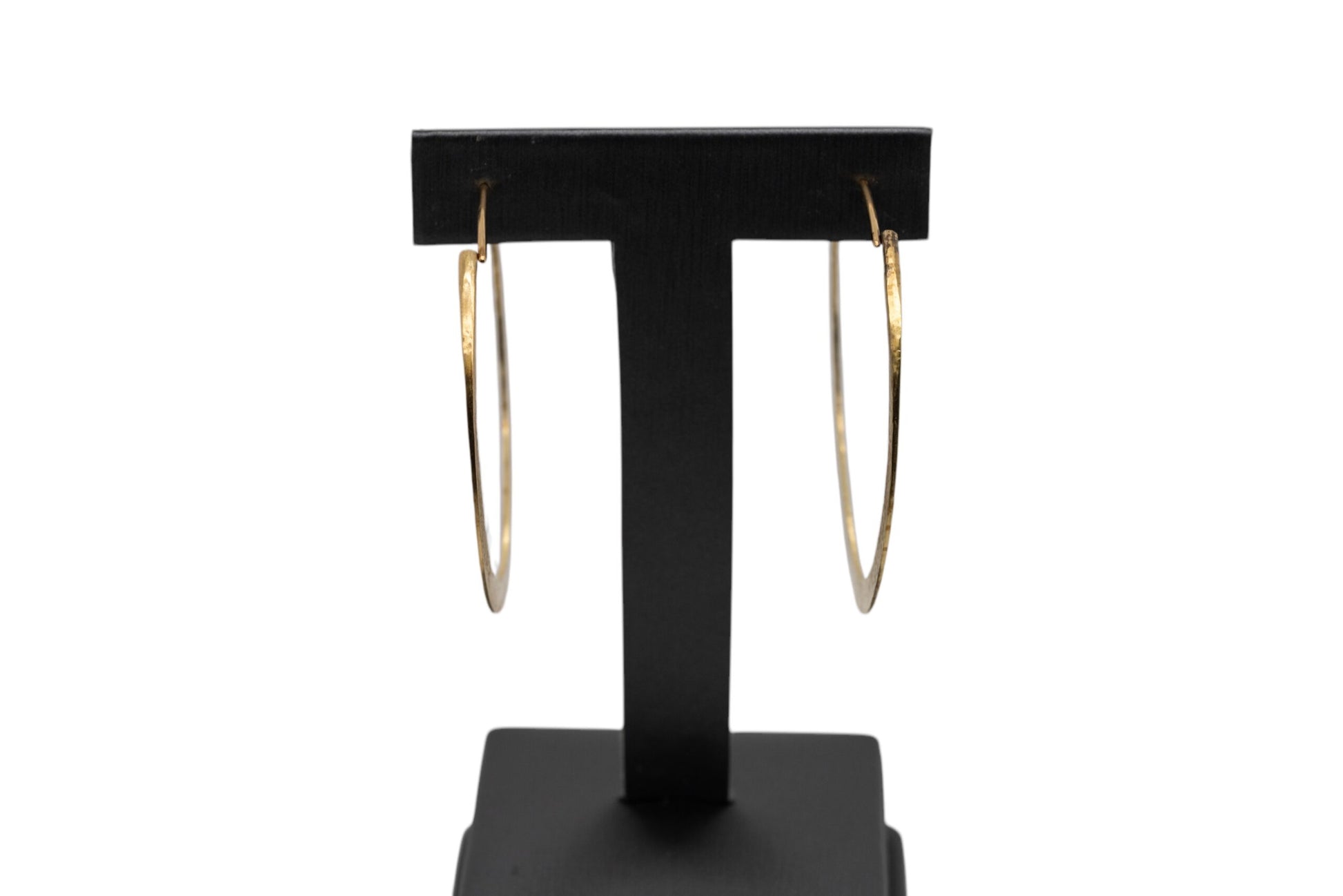 Classic style meets artisanal craftsmanship in these stunning 18k Yellow Gold Hammered Hoop Earrings.