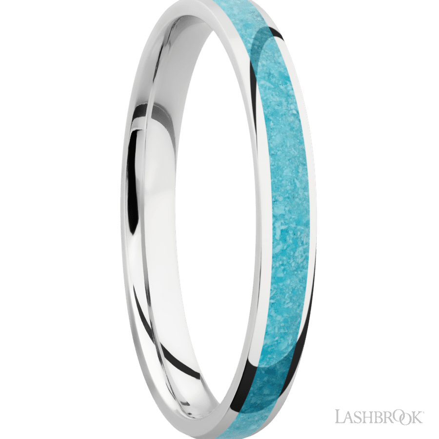 CC3D12/MOSAIC 3 mm wide/Domed/Cobalt Chrome band with one 2 mm Centered inlay of Turquoise.