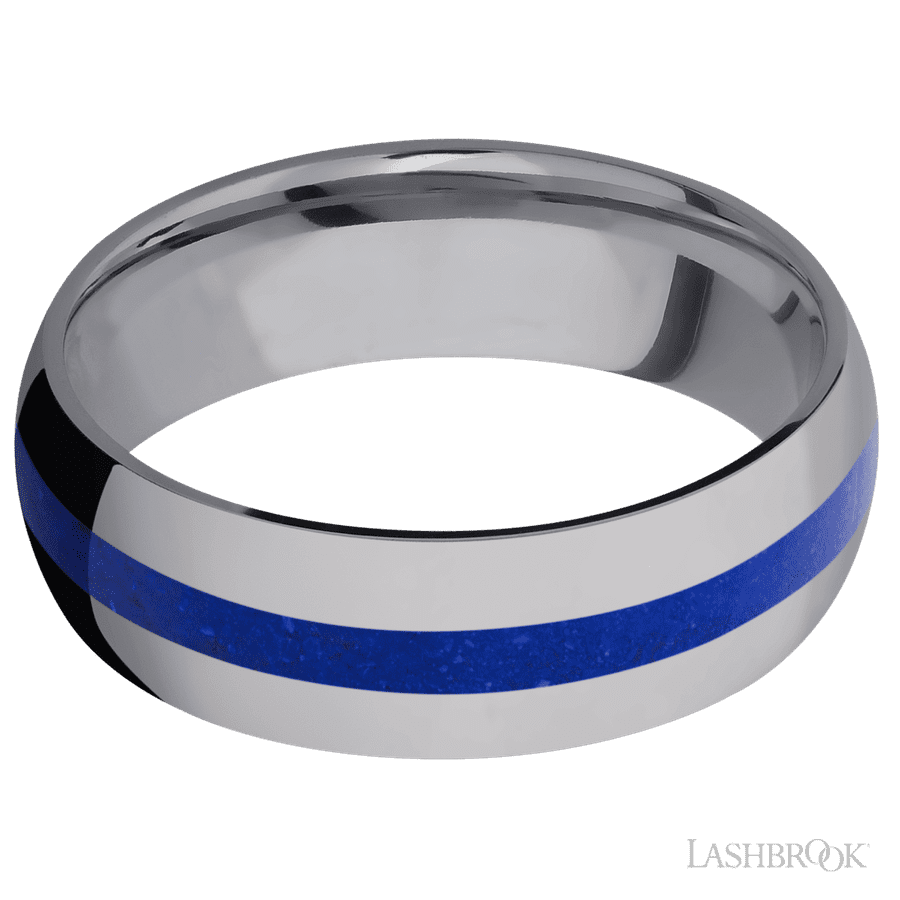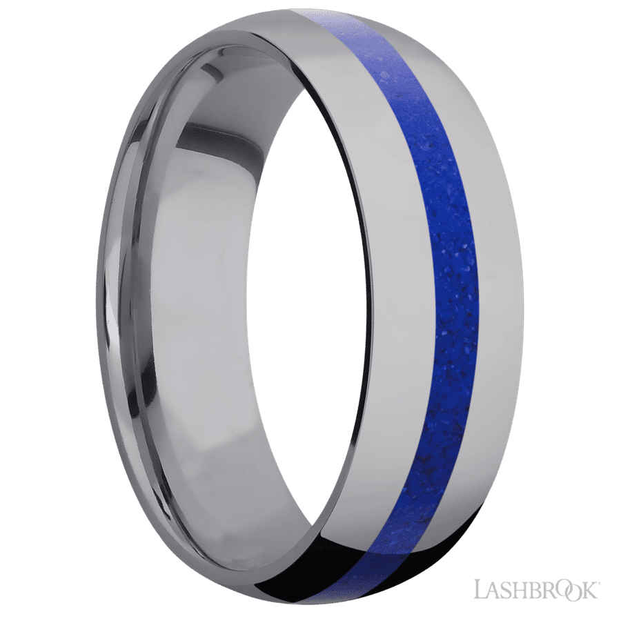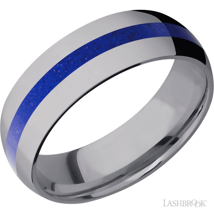 7 mm wide/Domed/Tantalum band with one 2 mm Centered inlay of Lapis.