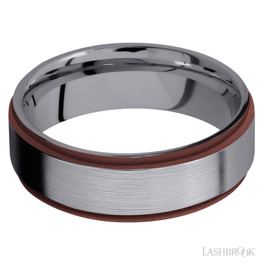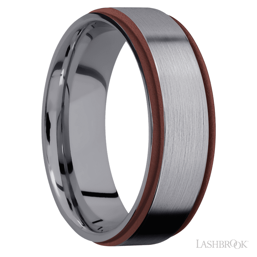 7 mm wide/Flat Grooved Edges/Tantalum band with two 1 mm Edge inlays of Crimson.