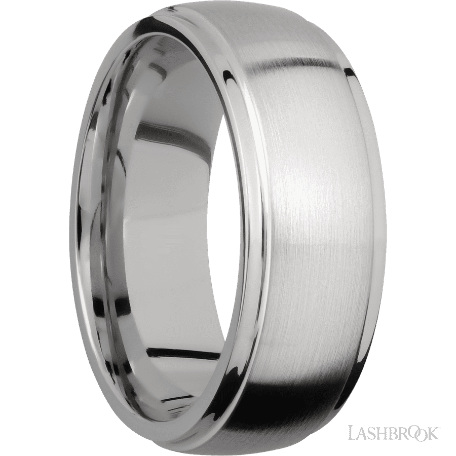 8 mm wide Domed Stepped Down Edges Titanium band.