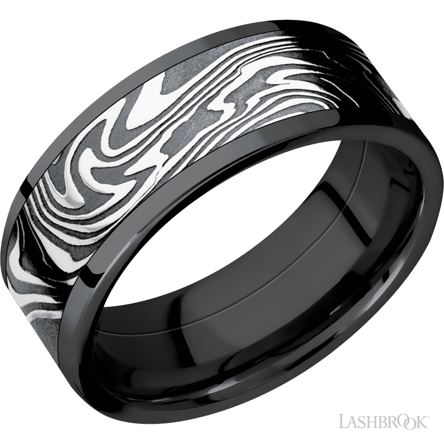 8 mm wide/Flat/Zirconium band with one 6 mm Centered inlay of Kinetic.