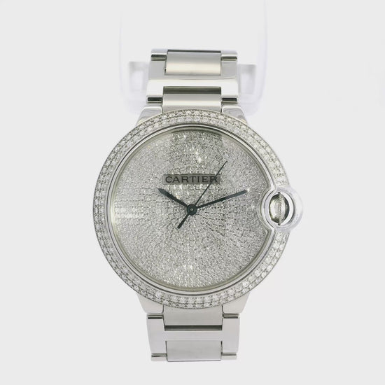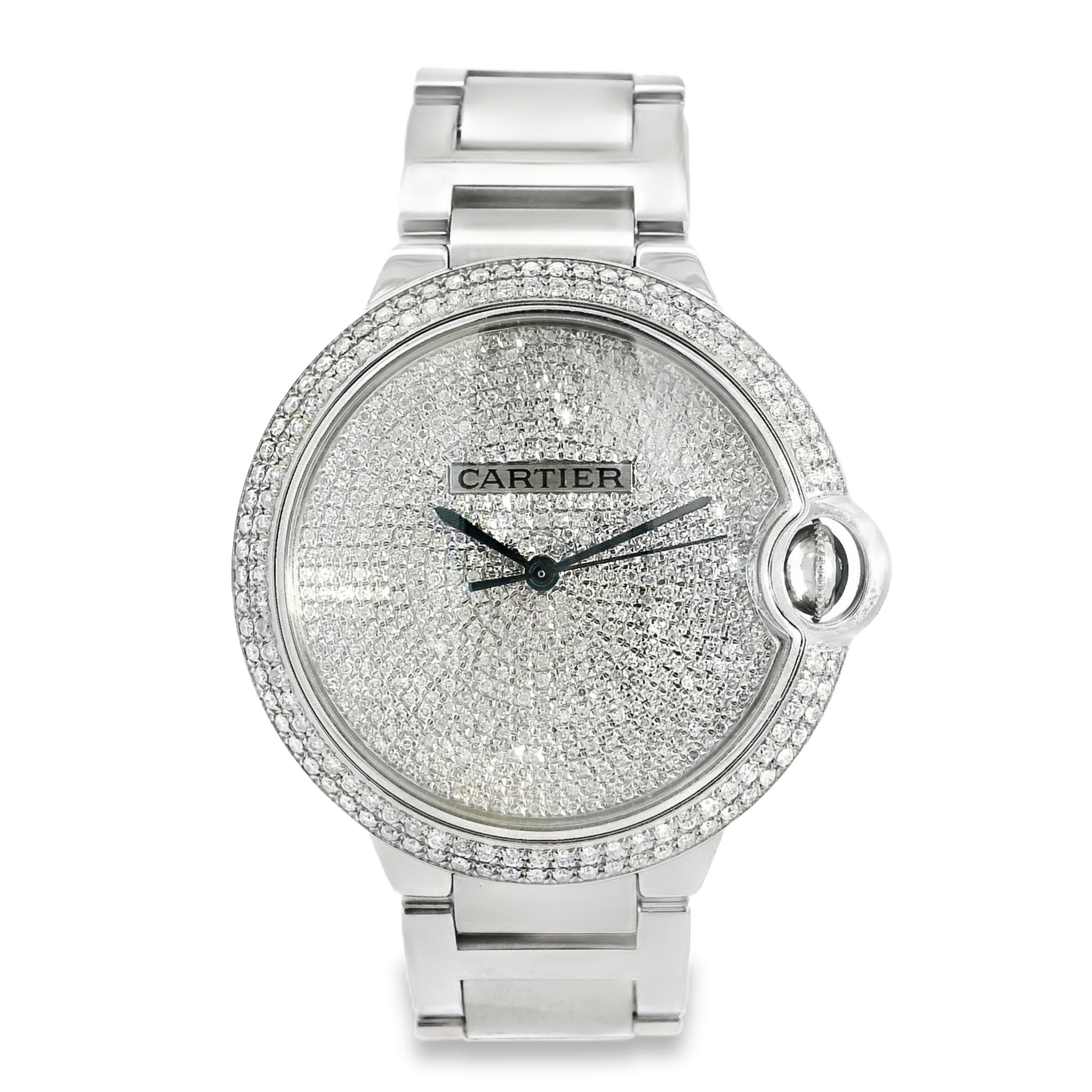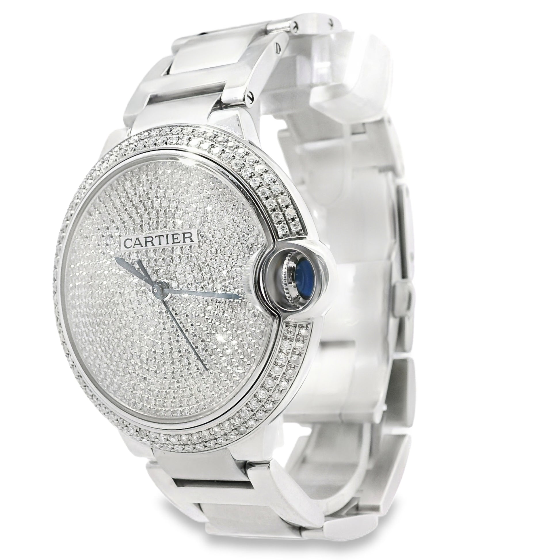 Cartier 3109 Ballon Bleu 44mm Diamond Dial with Aftermarket Diamond Bezel Watch |