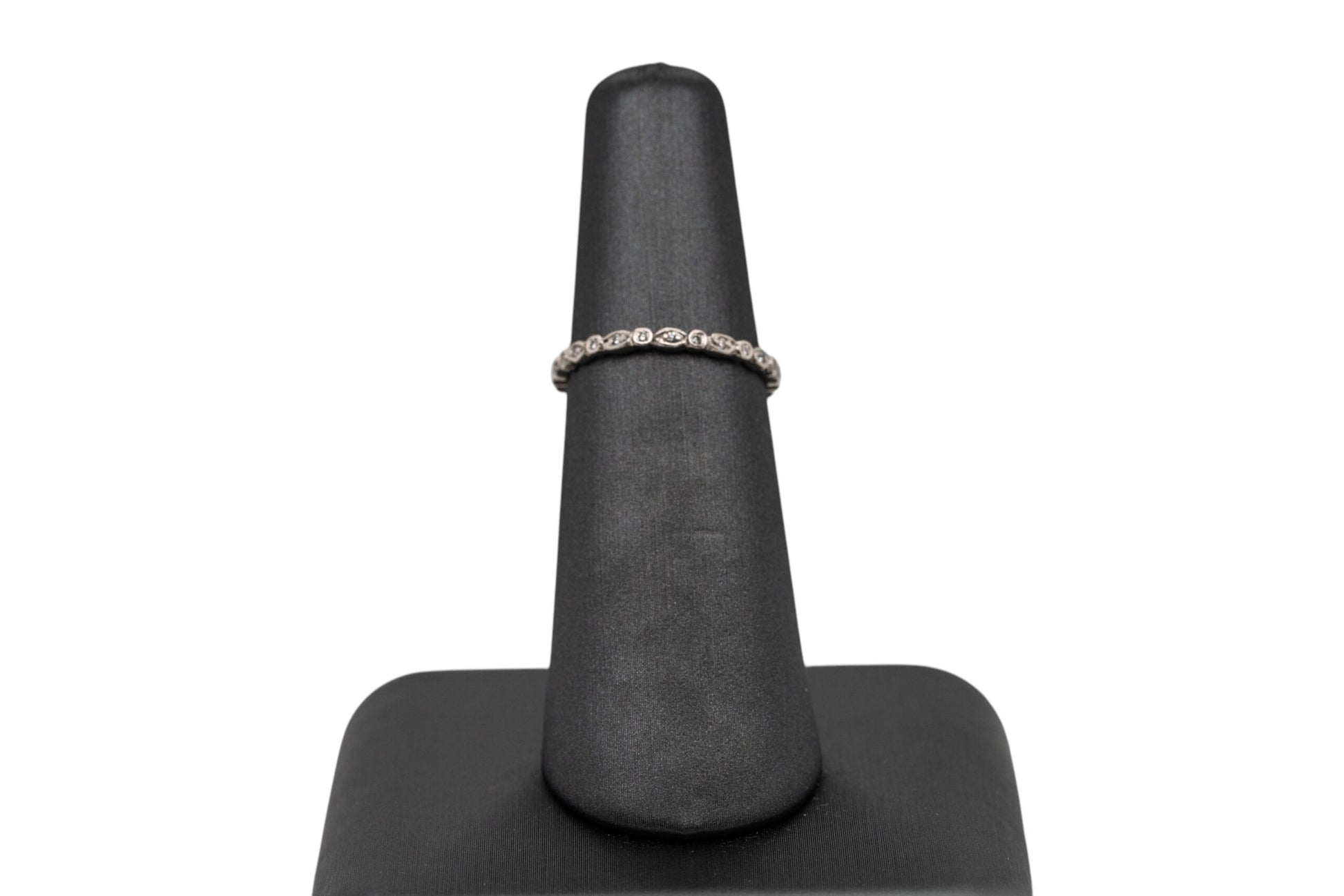 Expert artisans delicately craft this breathtaking piece from luminous platinum, which effortlessly complements the stationed round mili diamonds encircling the band. Each diamond sparkles with brilliant clarity, reflecting light with every movement. As a result, the ring becomes a powerful symbol of eternal love and lifelong devotion.