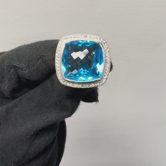 This exquisite David Yurman Albion Ring features a striking 20mm Blue Topaz stone, framed by diamonds that exhibit exceptional G/H color and VS clarity.