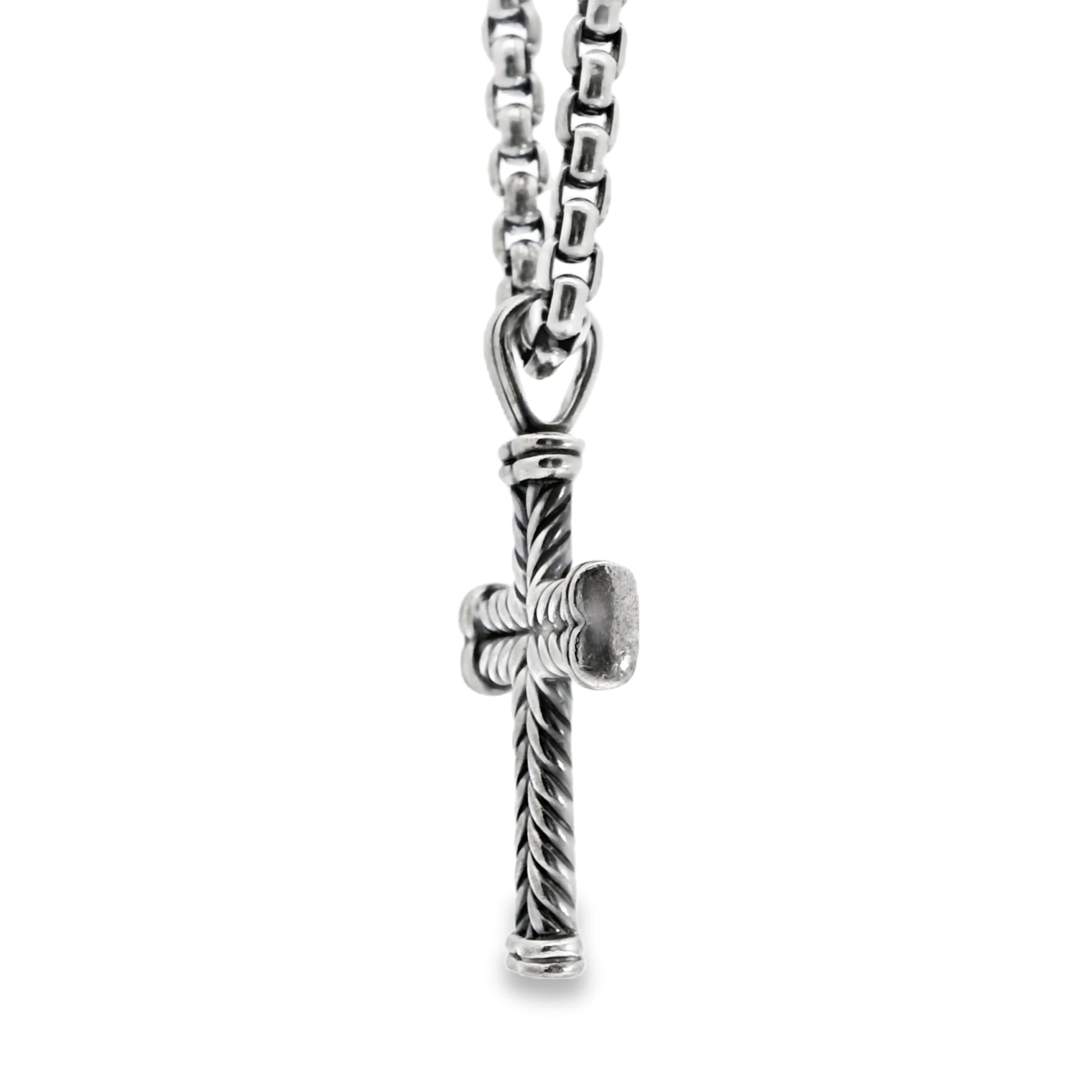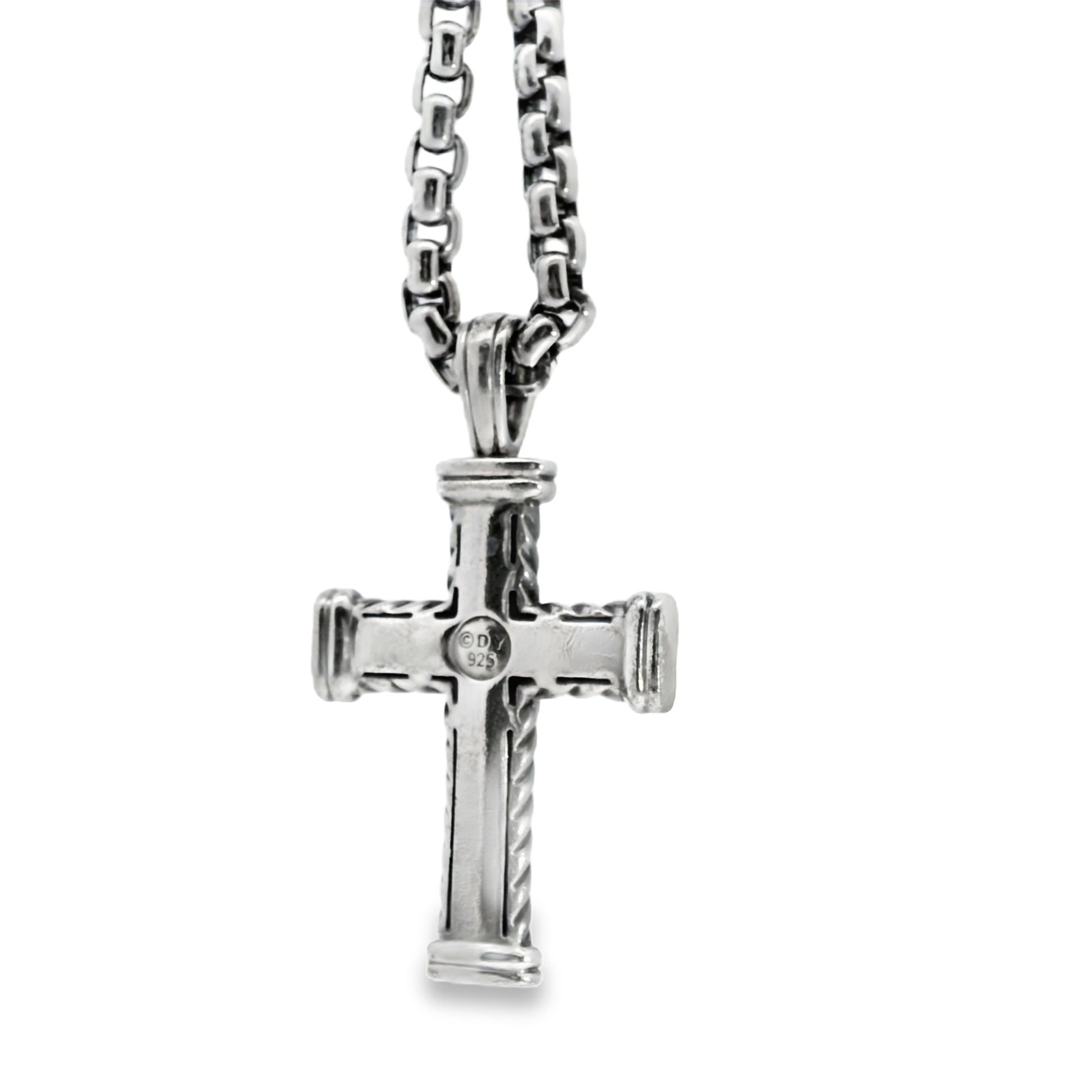 This beautiful David Yurman Silver Cross Pendant Necklace is in excellent condition and is ready to ship!