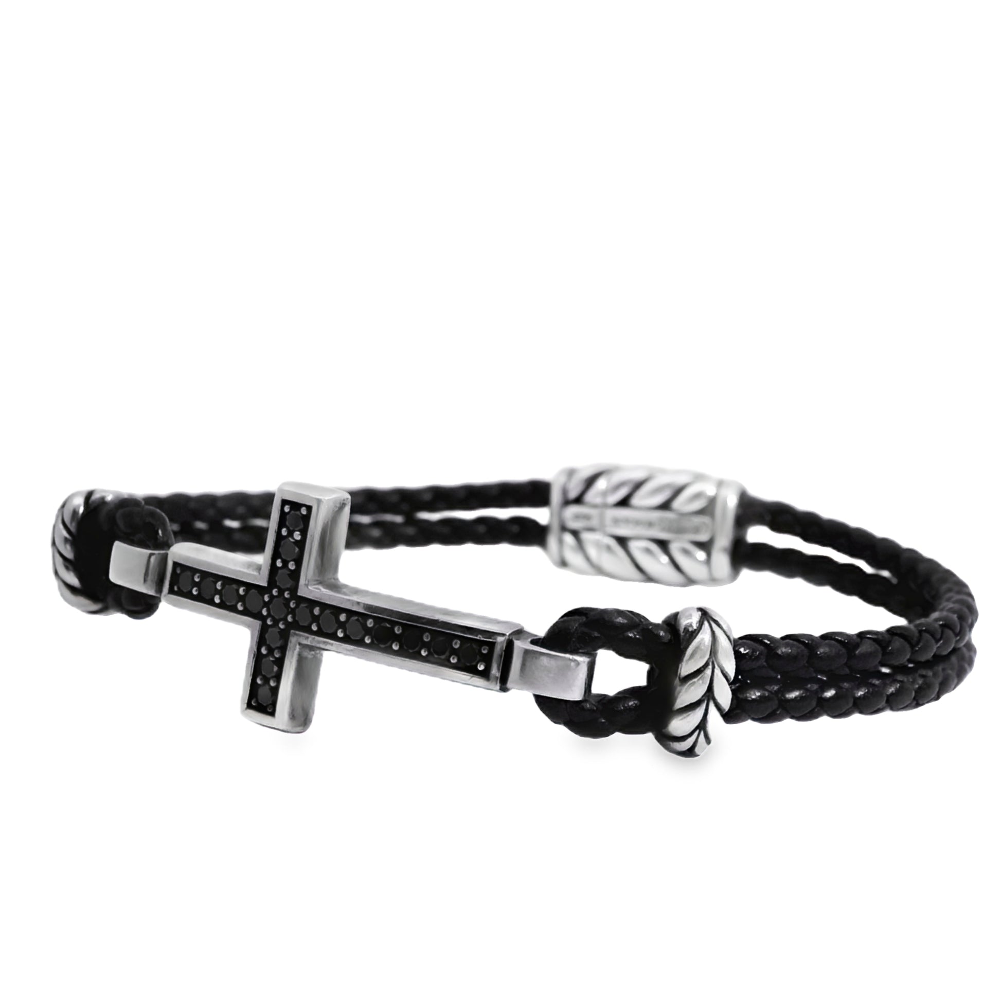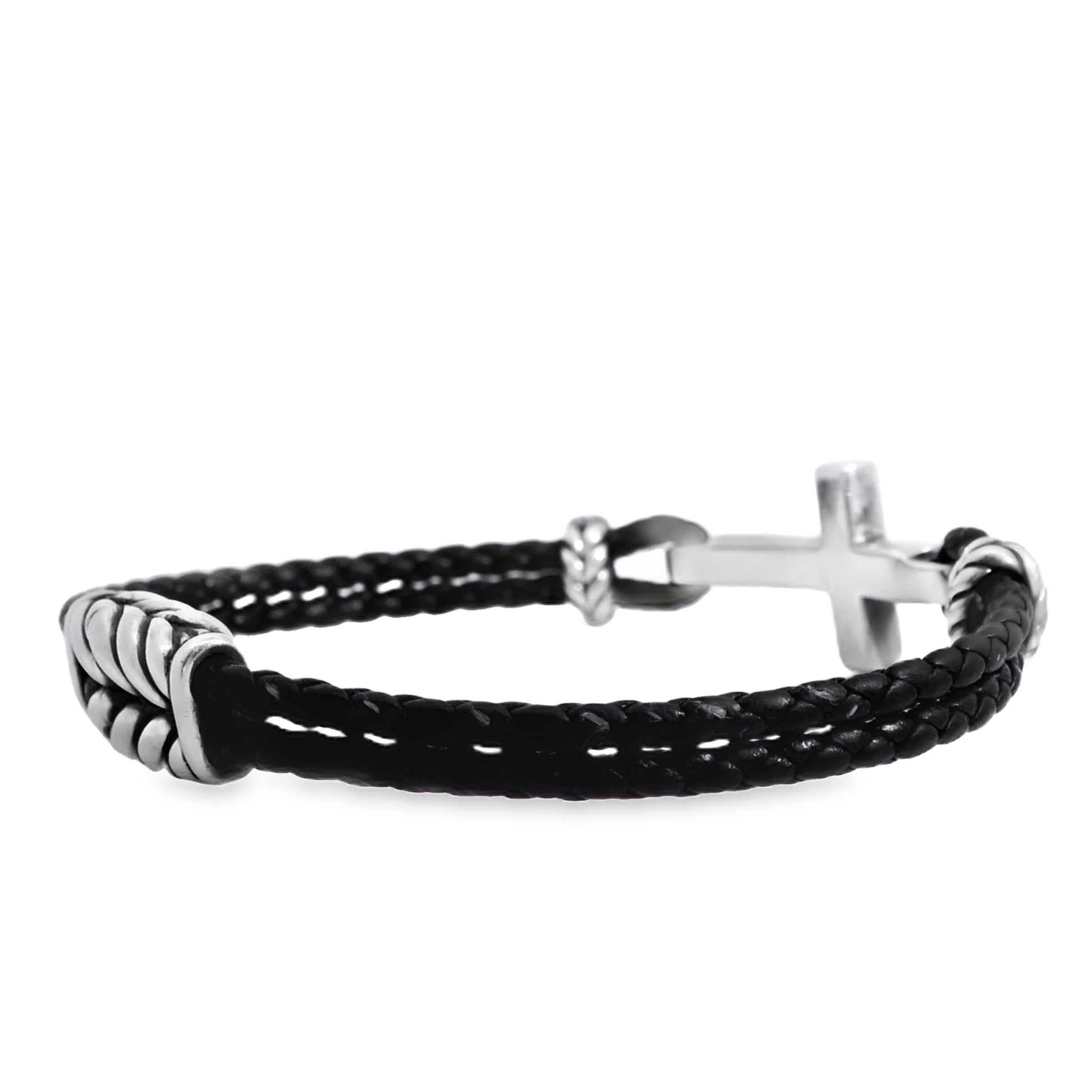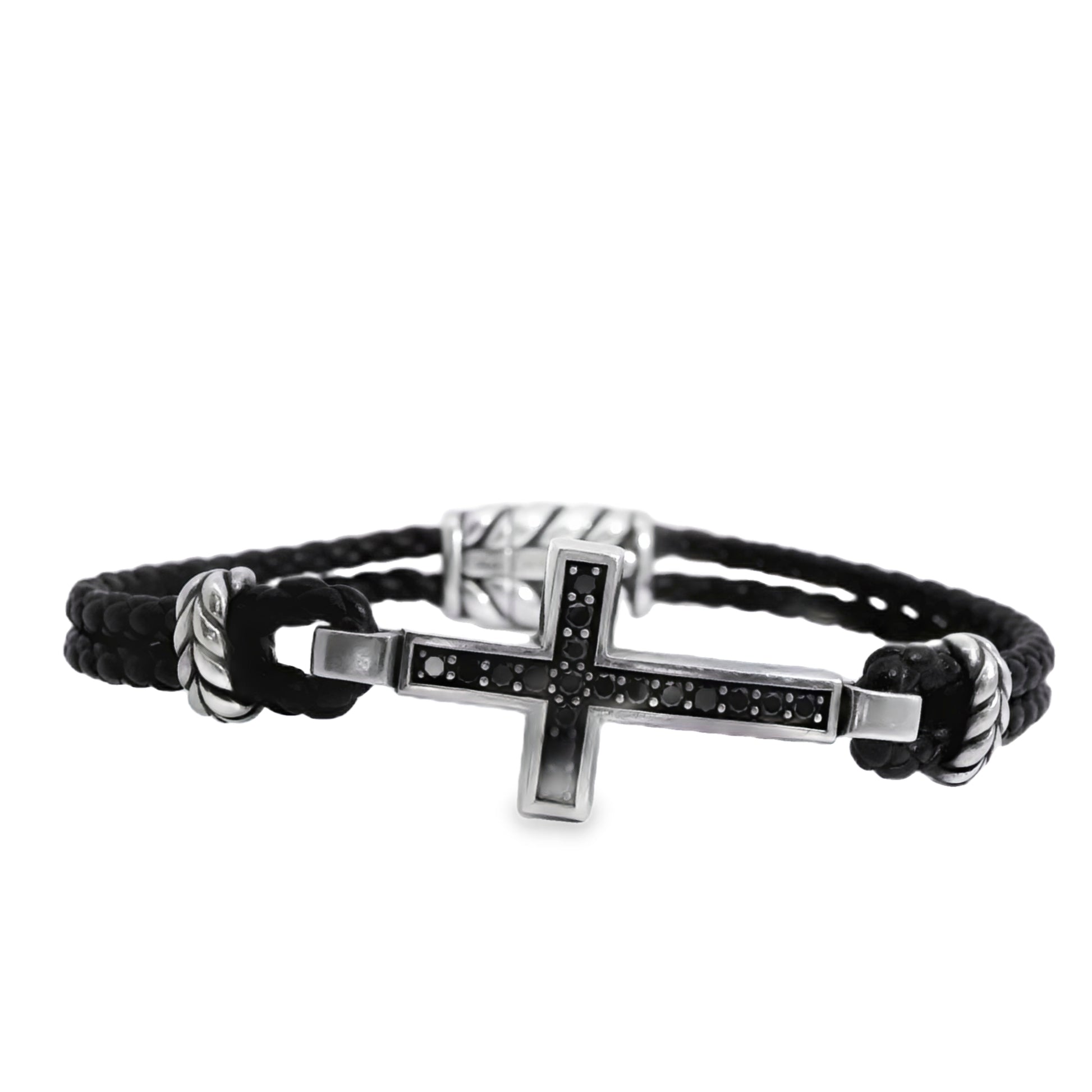 David Yurman Sterling Silver Cross Station Leather Bracelet