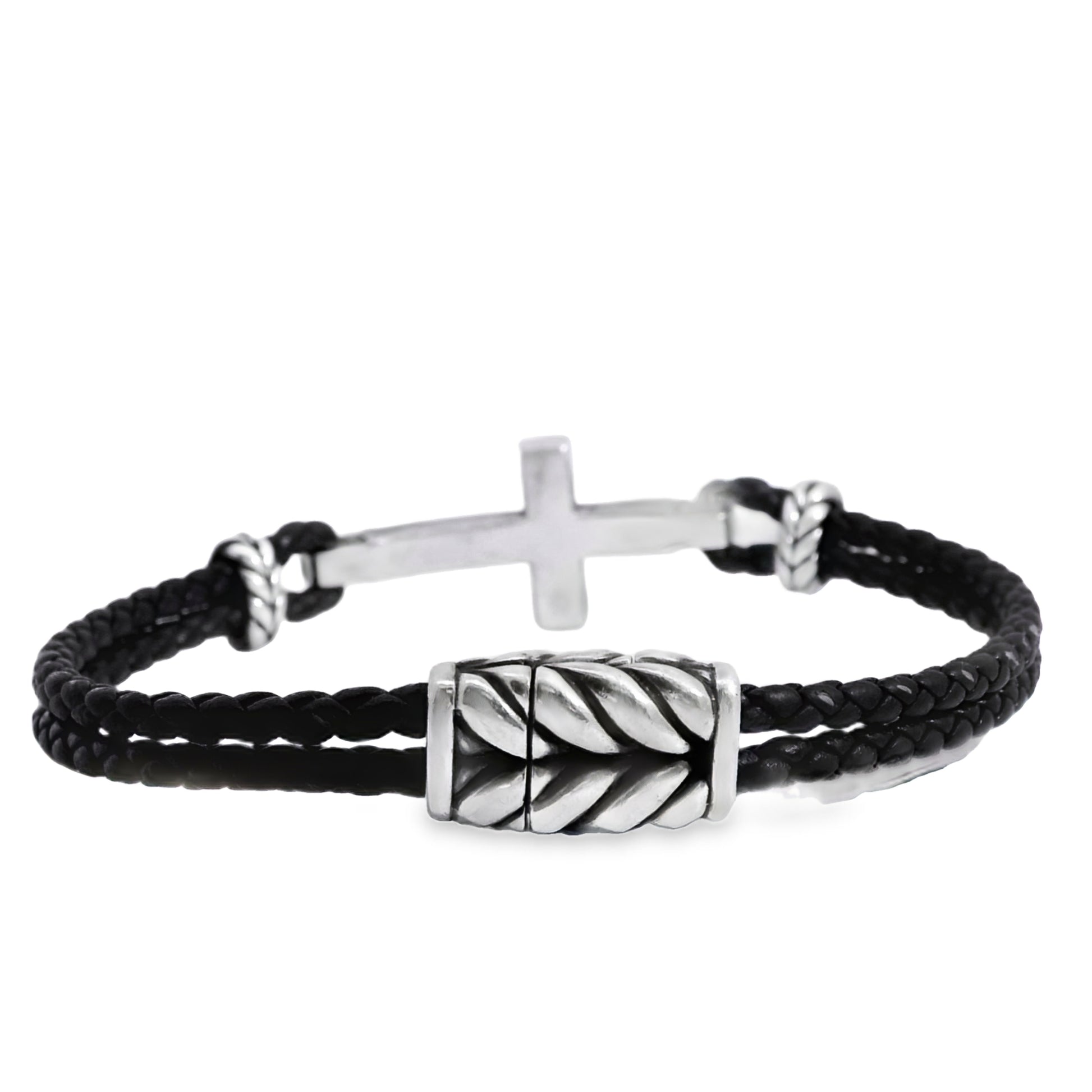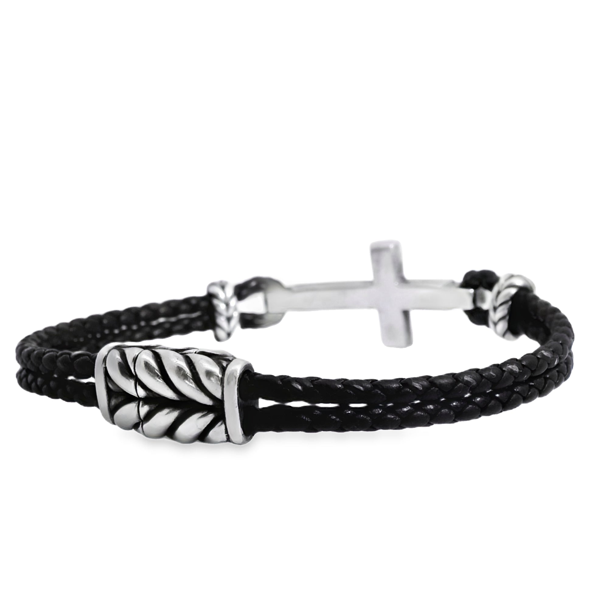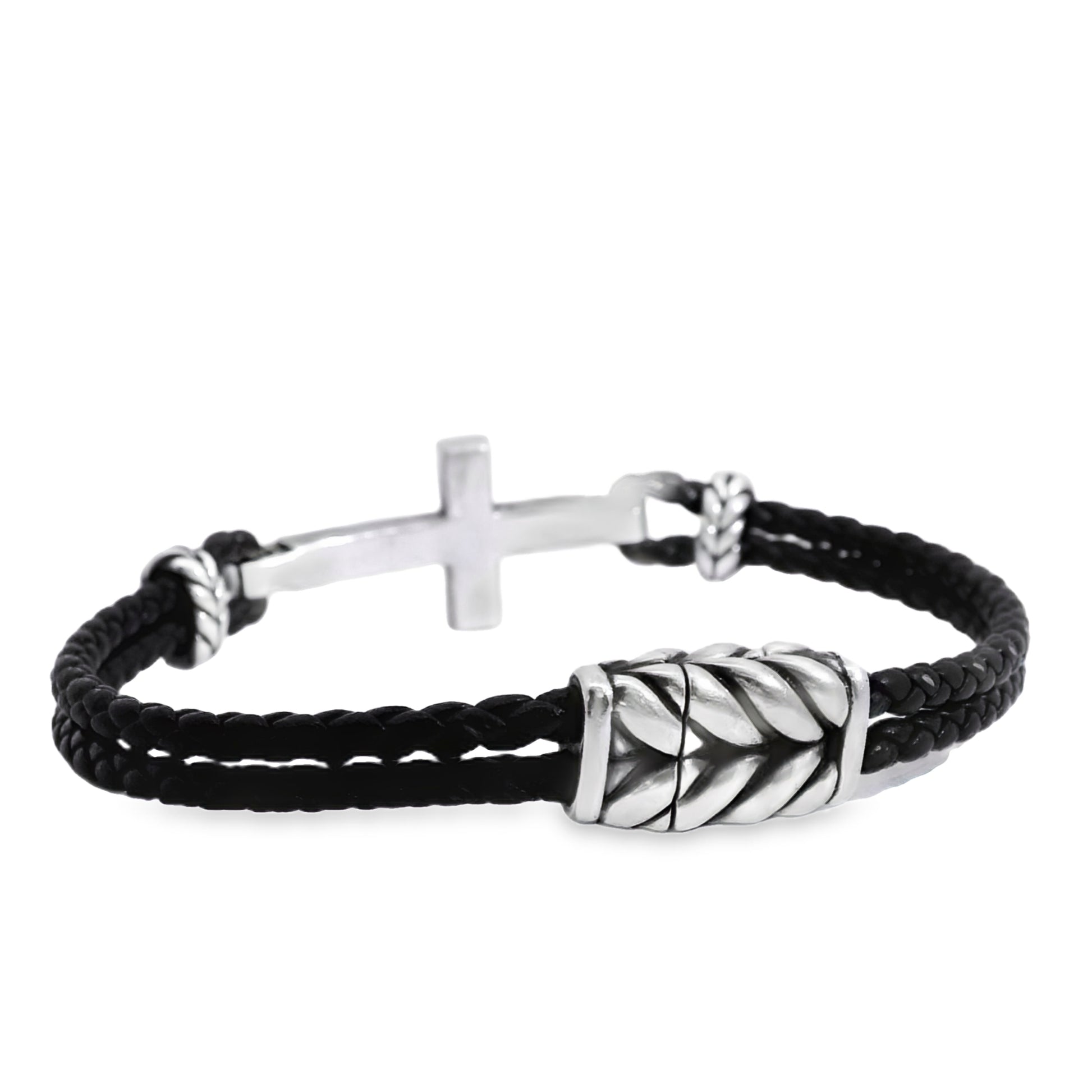 David Yurman Sterling Silver Cross Station Leather Bracelet