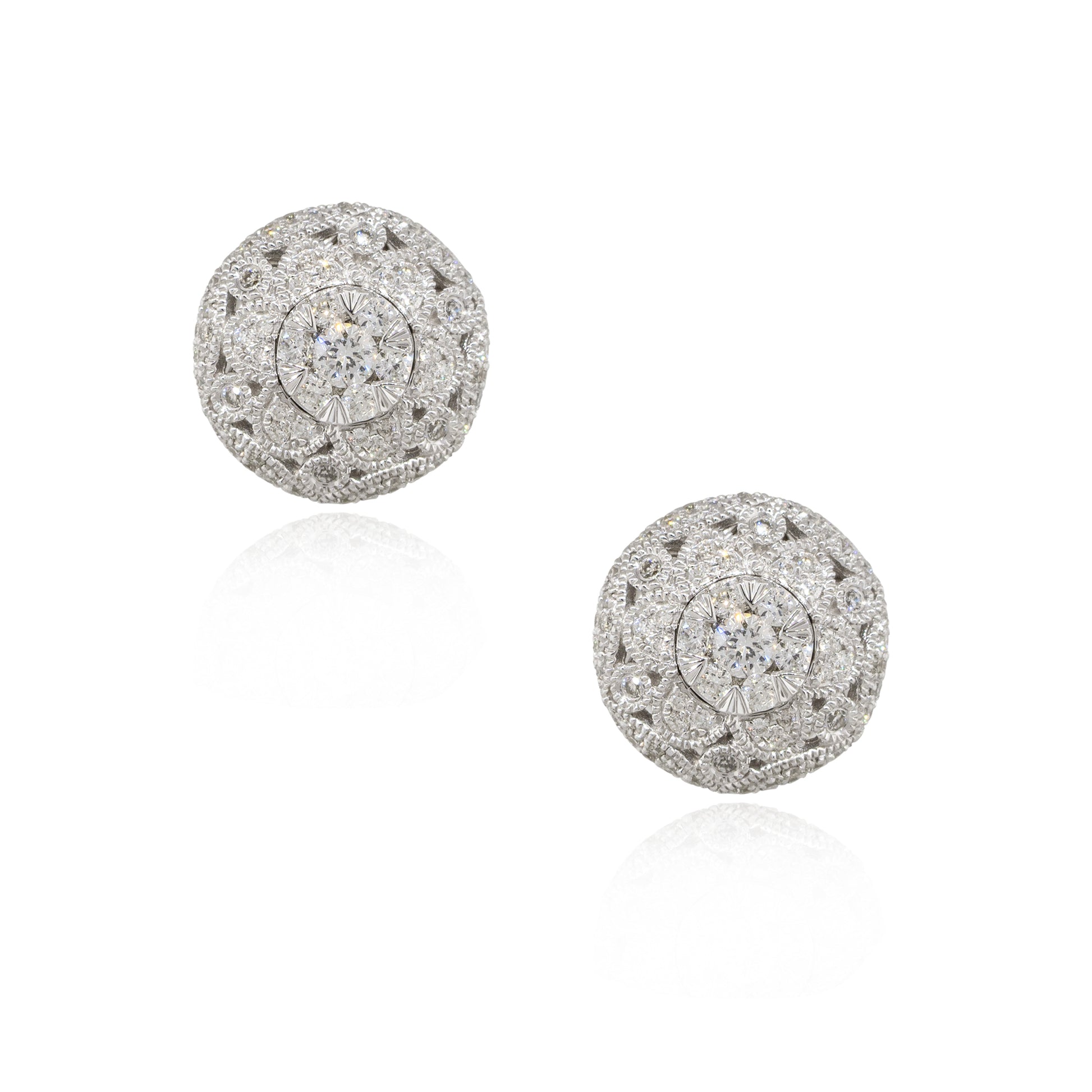 Add timeless sparkle to your collection with these Effy 14k white gold pave diamond button earrings. Featuring 0.50ctw of round brilliant diamonds set in a dazzling pave pattern, these earrings offer exceptional brilliance and a classic, polished silhouette.