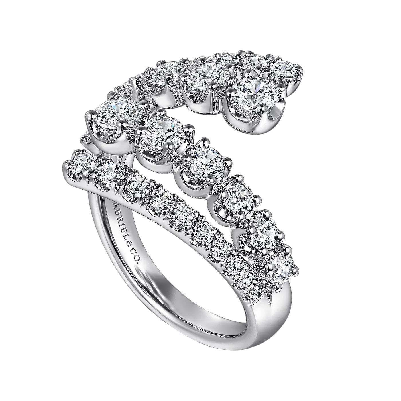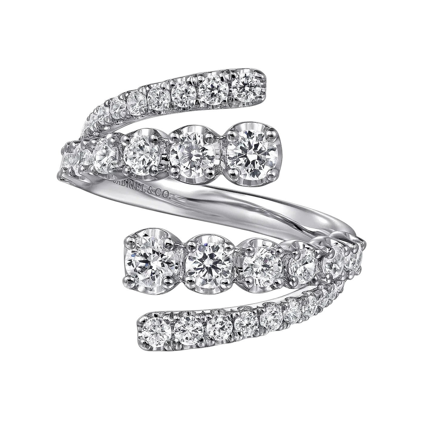 Gabriel and Co. 14k White Gold Double Row 1.48ctw Diamond Bypass Ladies Ring