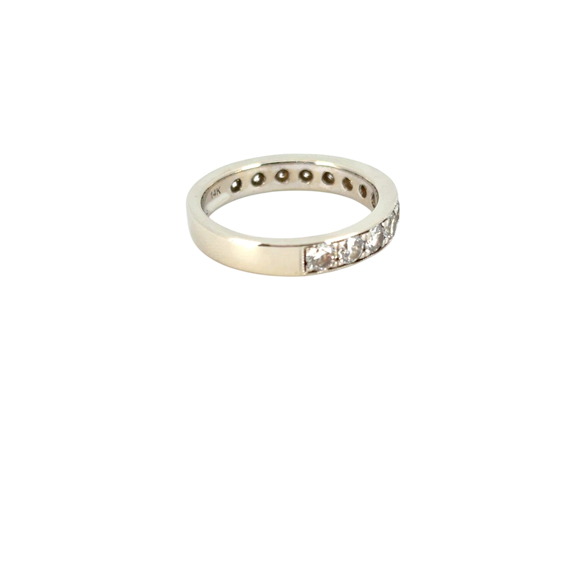 This wedding band has approximately 15 Natural Diamonds (weighing approximately 1.50 ctw) that are in a mirco pavé setting. The diamonds do not encircle the entire ring. |