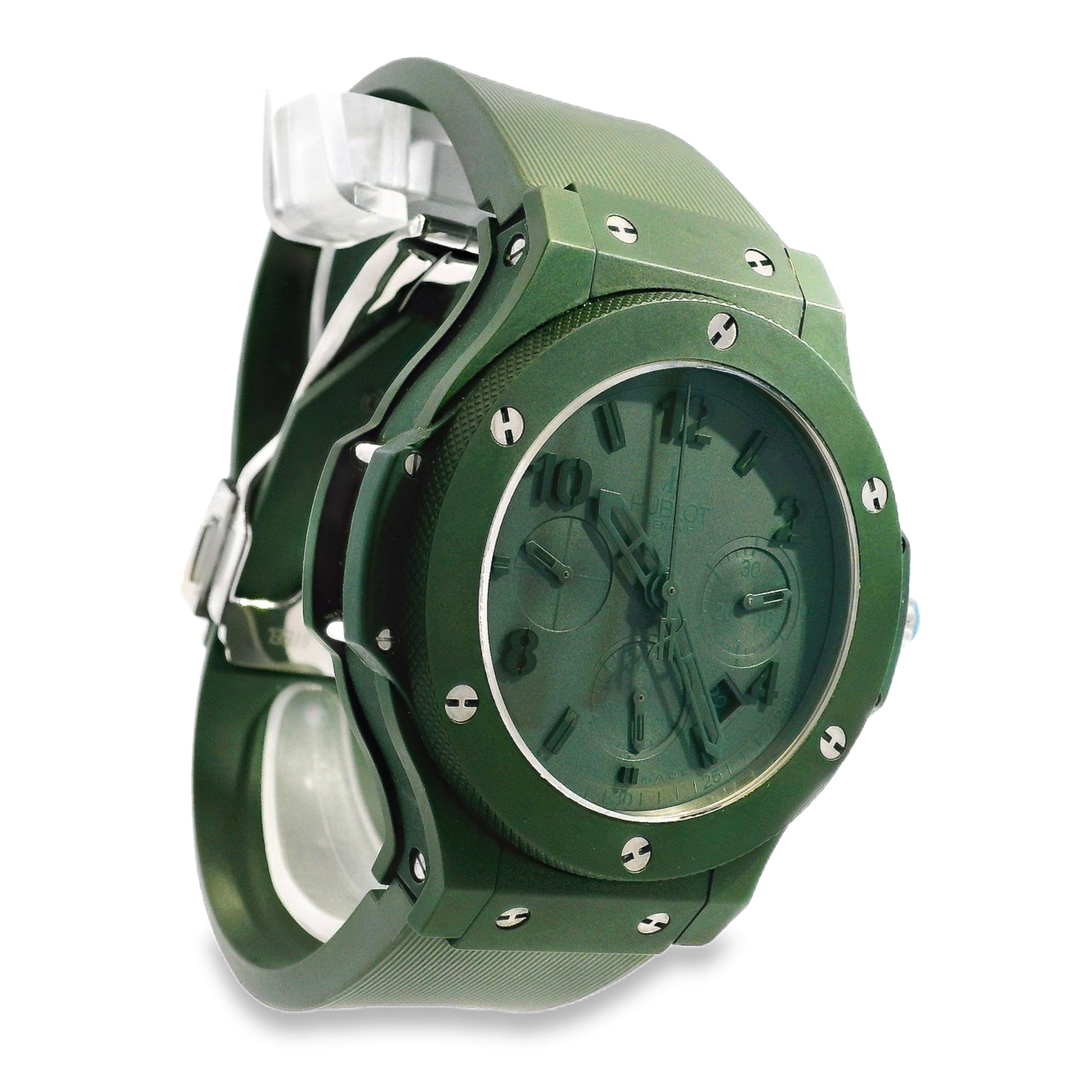 This bold and luxurious Hublot Big Bang Green Dial Ceramic Watch is in excellent condition and ready to ship!