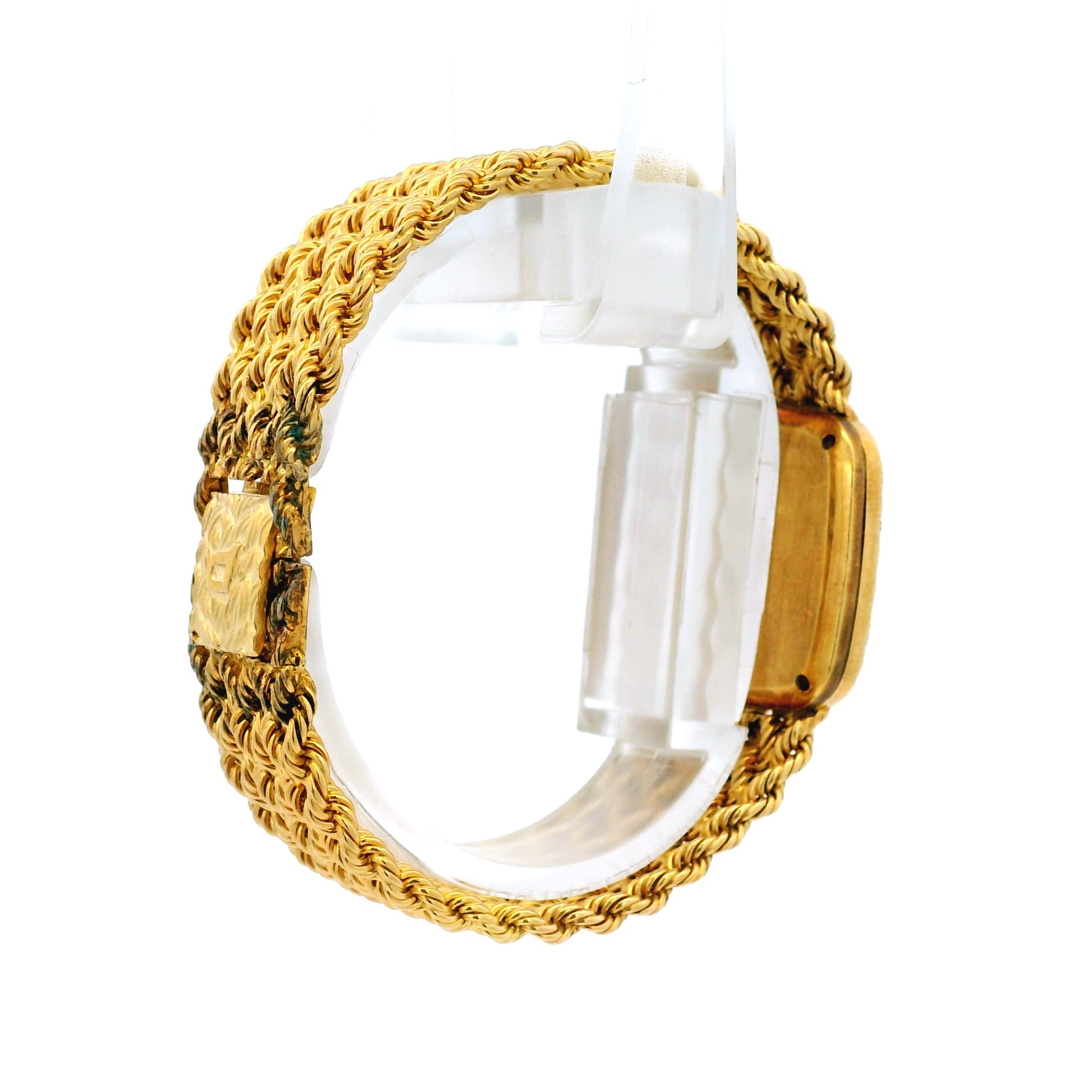 Completing the design is the original integrated woven 18k yellow gold bracelet, seamlessly flowing from the case for a cohesive and luxurious appearance. The bracelet is secured with a fold-over clasp and will comfortably fit up to a 6-inch wrist.