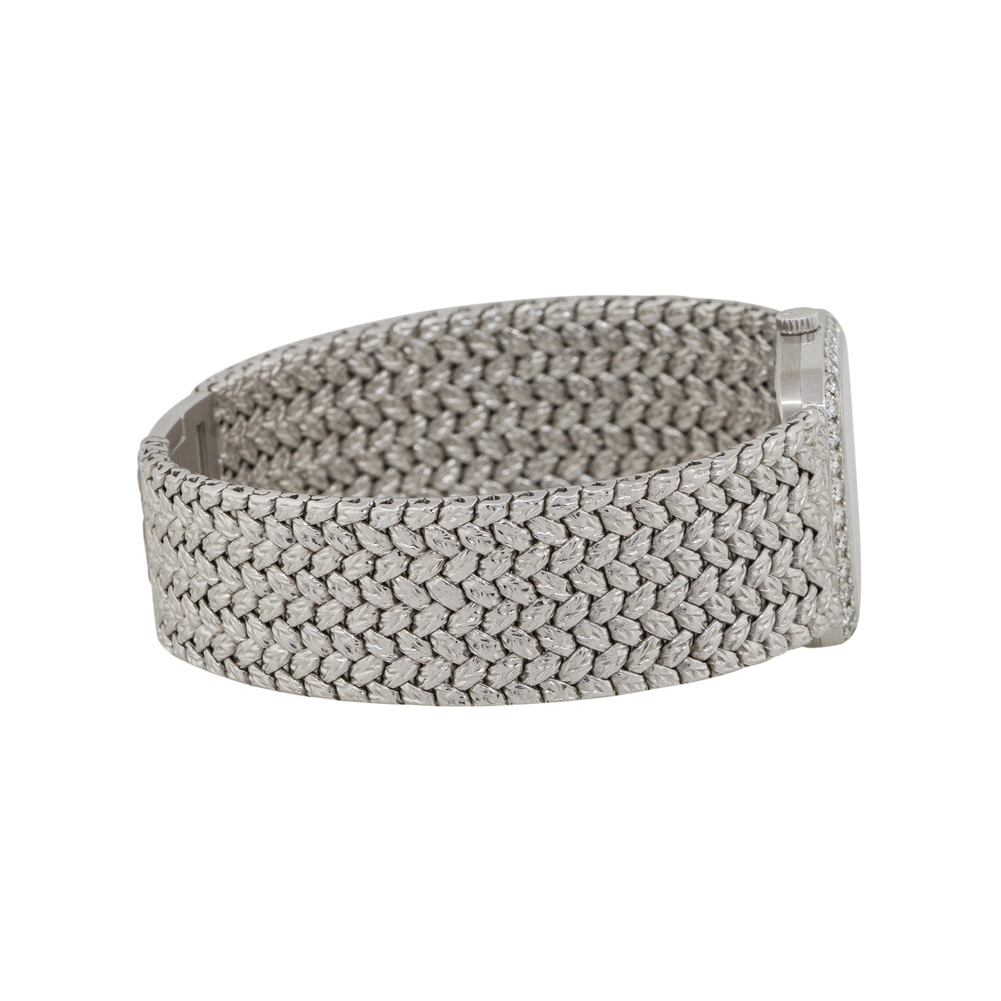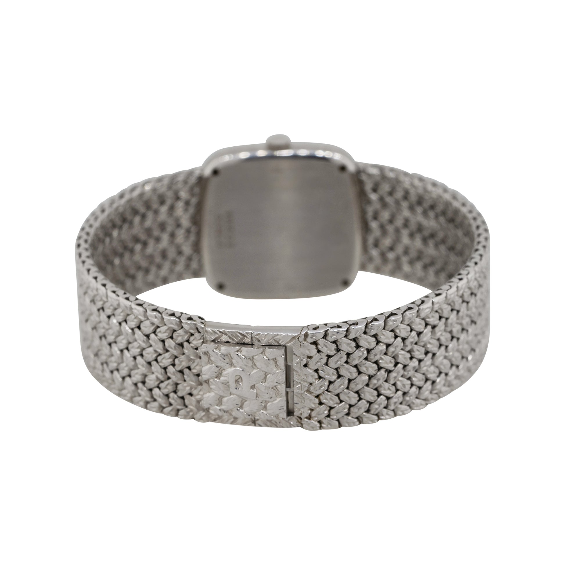 The 23mm case offers a refined, feminine profile, while the fully integrated 18k white gold bracelet ensures a seamless, high-end look. A manual wind movement powers this horological treasure, maintaining the elegance of vintage craftsmanship and precision.
