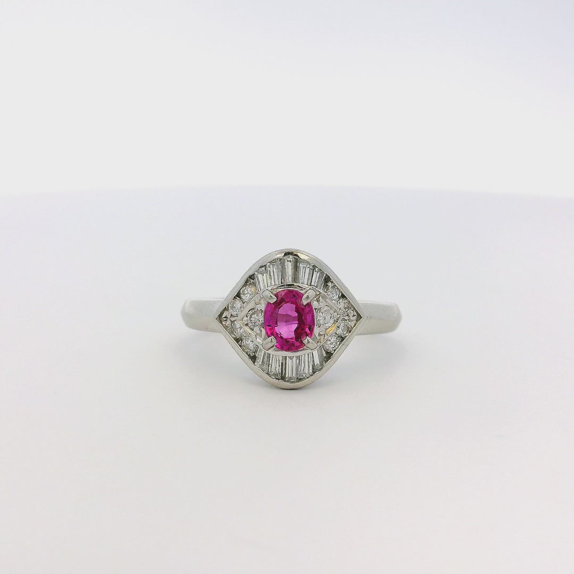 Platinum 0.47ct Oval Ruby Eye with Diamonds Cocktail Ring