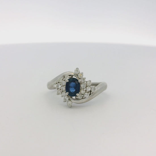 Platinum 0.48ct Oval Cut Sapphire Diamond Cocktail Spiral Ring