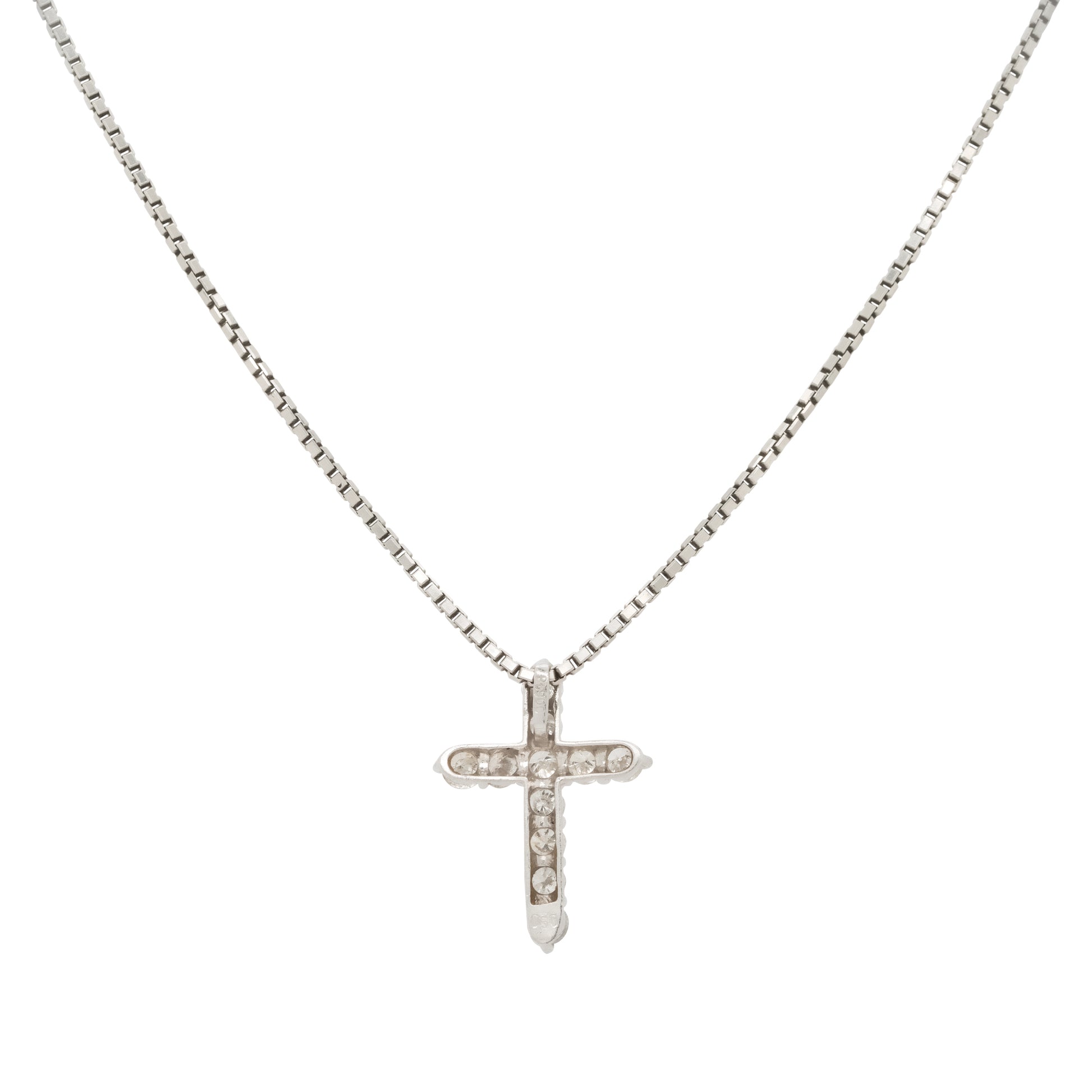 Platinum 0.50ctw Small Diamond Cross Pendant Necklace