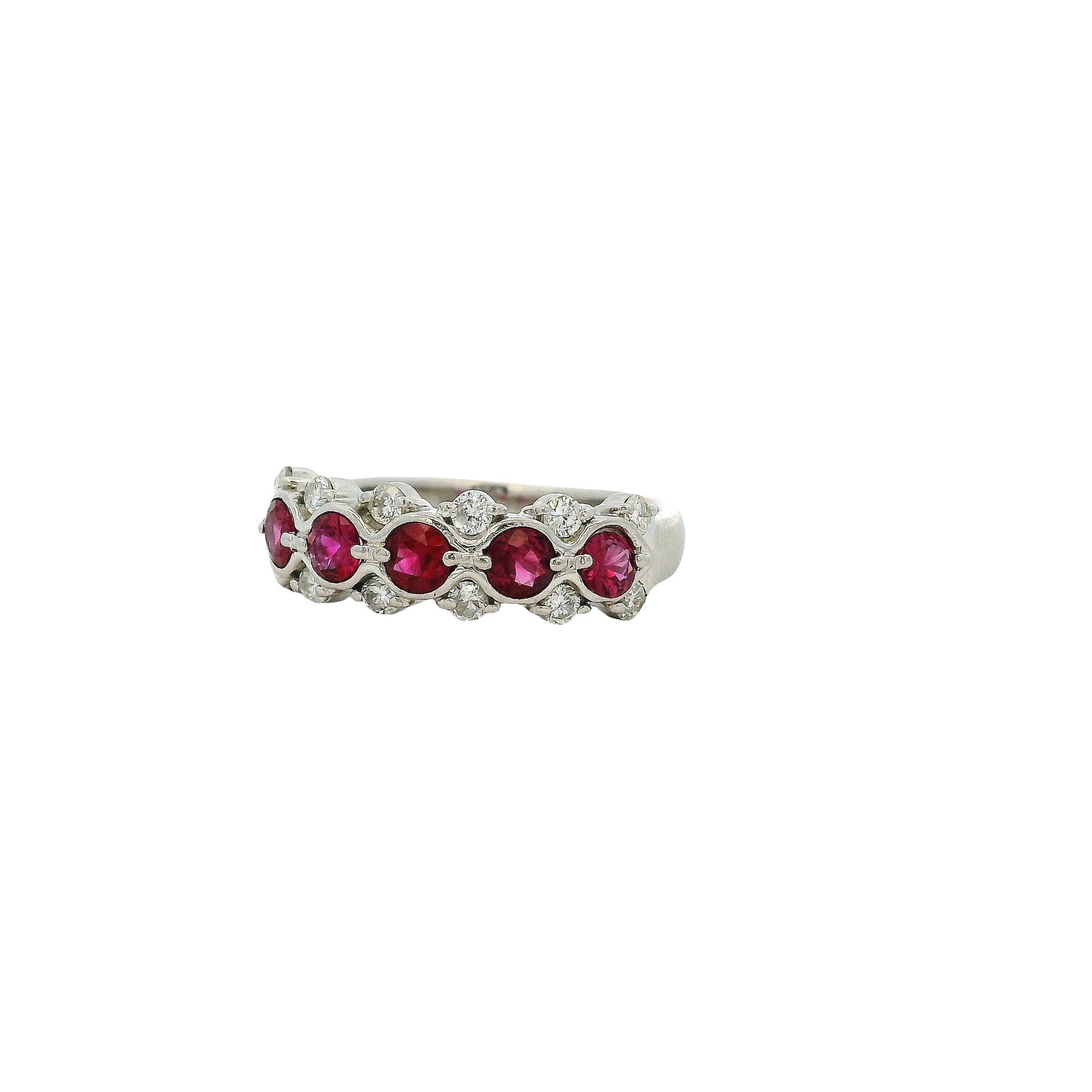 | Gemstone Details | This ring features approximately 0.75 carats of Natural Round Cut Ruby Gemstones. |