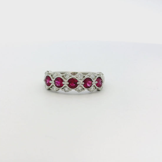This stunning Ruby Diamond Platinum Ring is in excellent condition and is ready to ship!