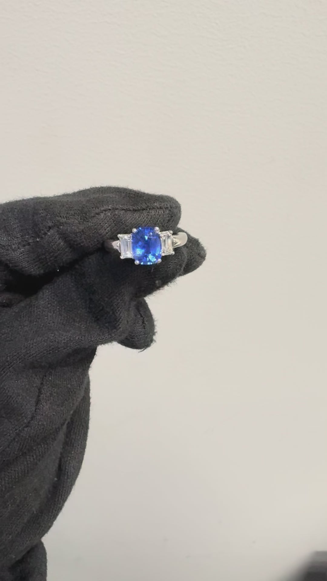 As a result, the ring radiates sophistication. Moreover, the rich blue stones contrast beautifully with the sleek platinum band, creating a timeless piece that’s sure to captivate.