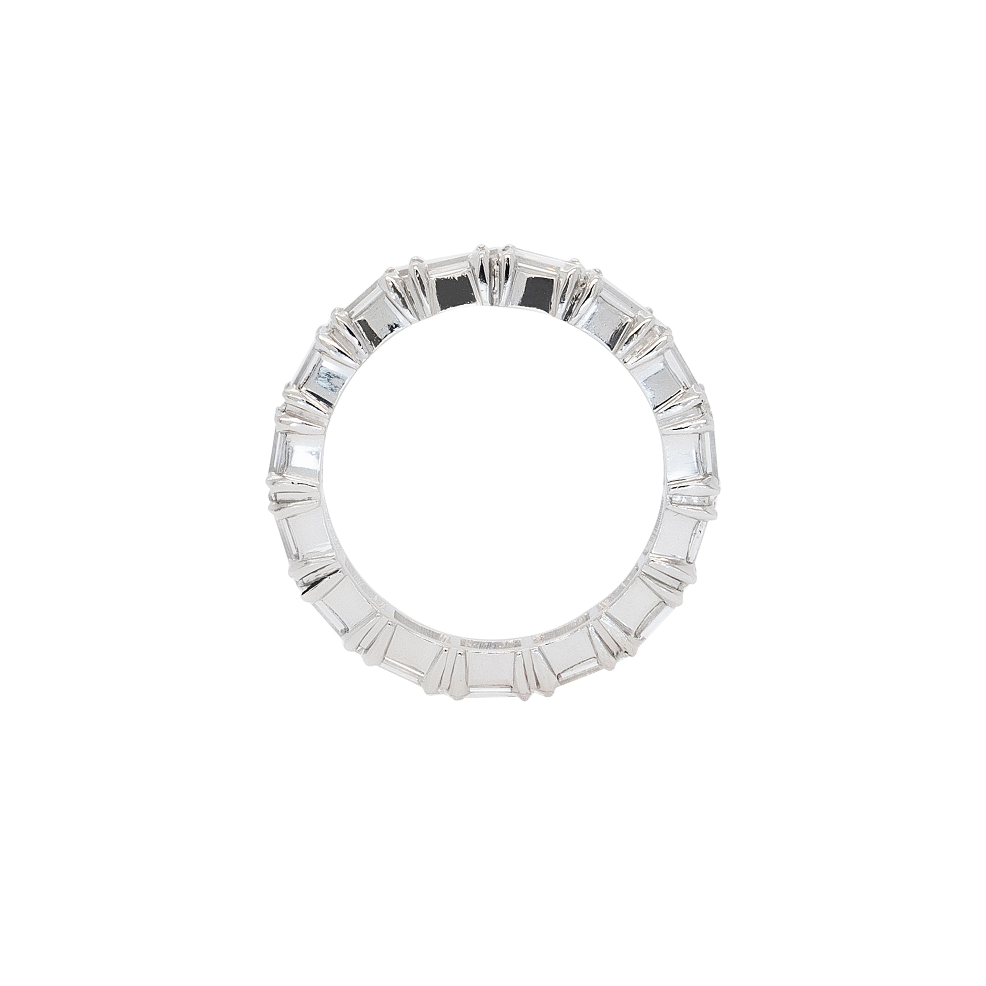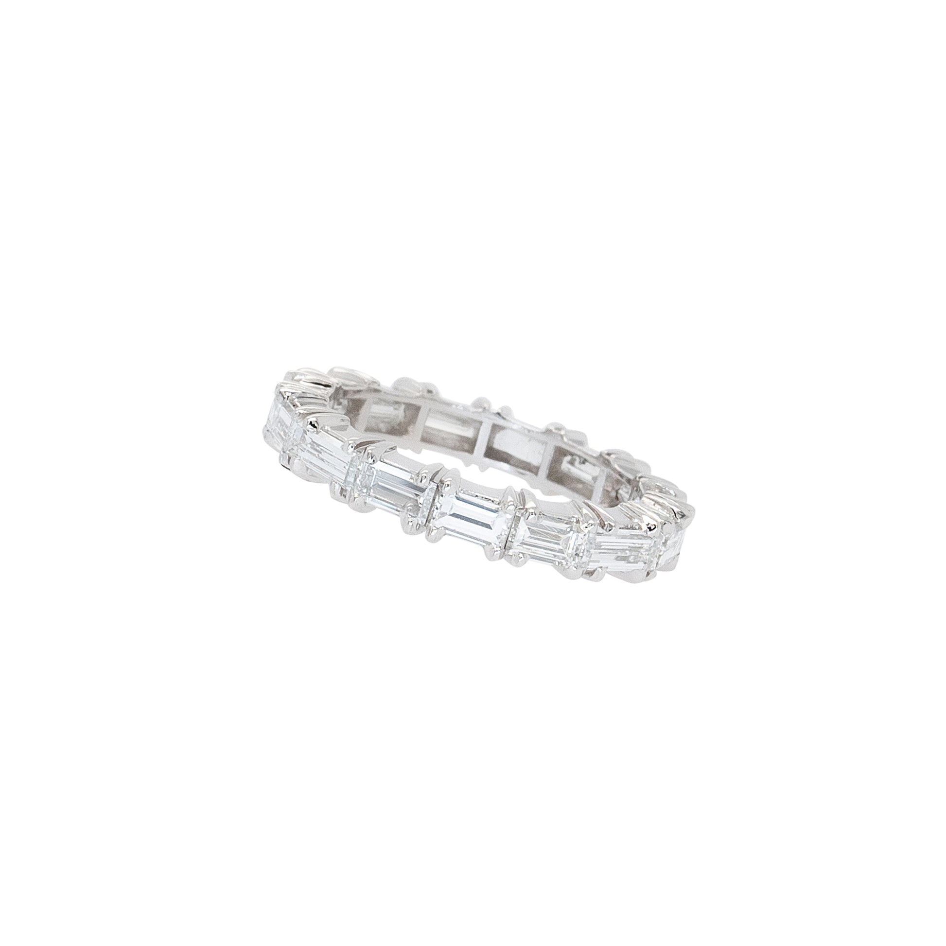 This ring features approximately 7.5 carats total weight of straight baguette cut natural diamonds. The diamonds are G/H in color and VS in clarity. The band includes 15 dazzling stones in an eternity design. |