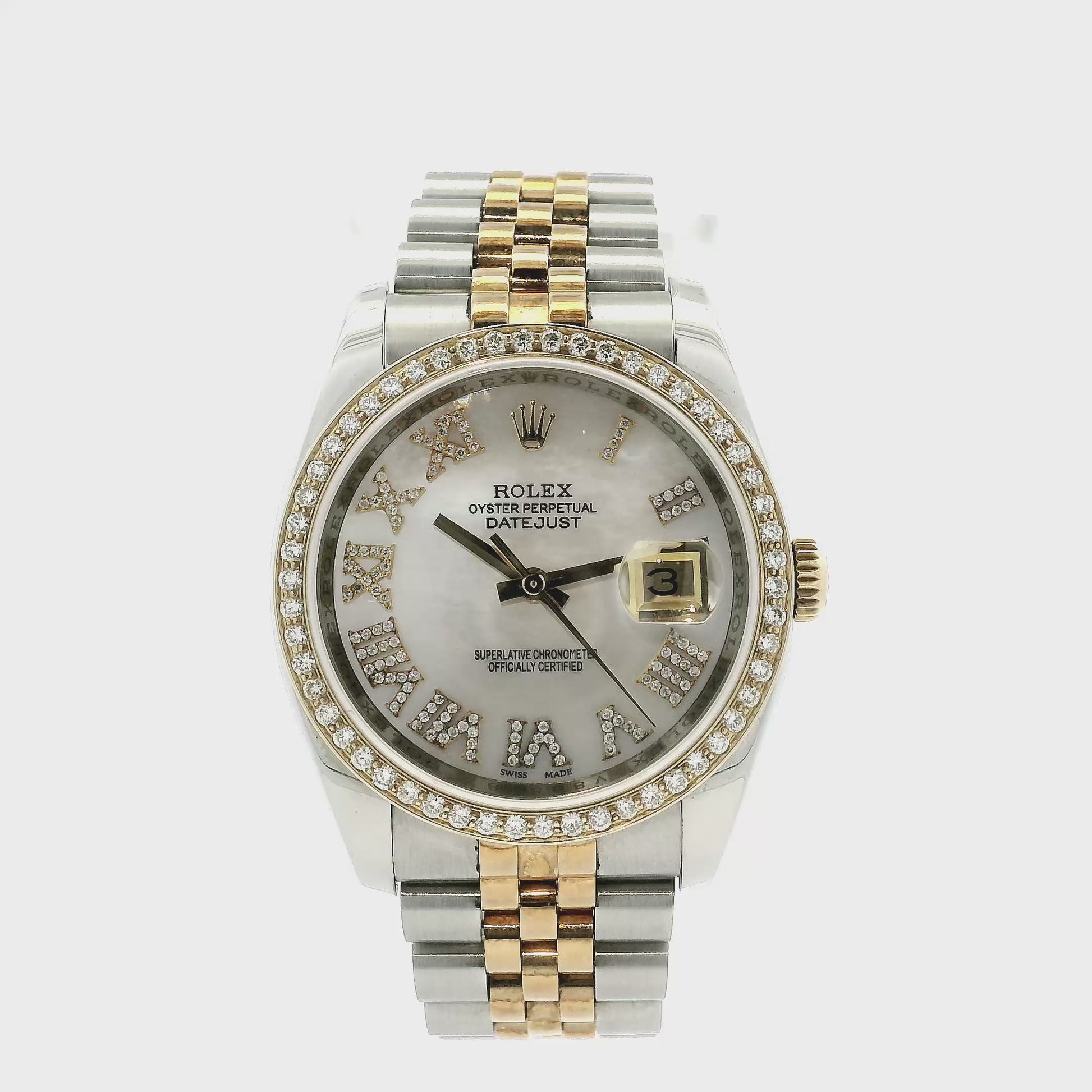 Rolex 116233 Datejust 18k Yellow Gold Aftermarket Mother of Pearl Diamond Watch