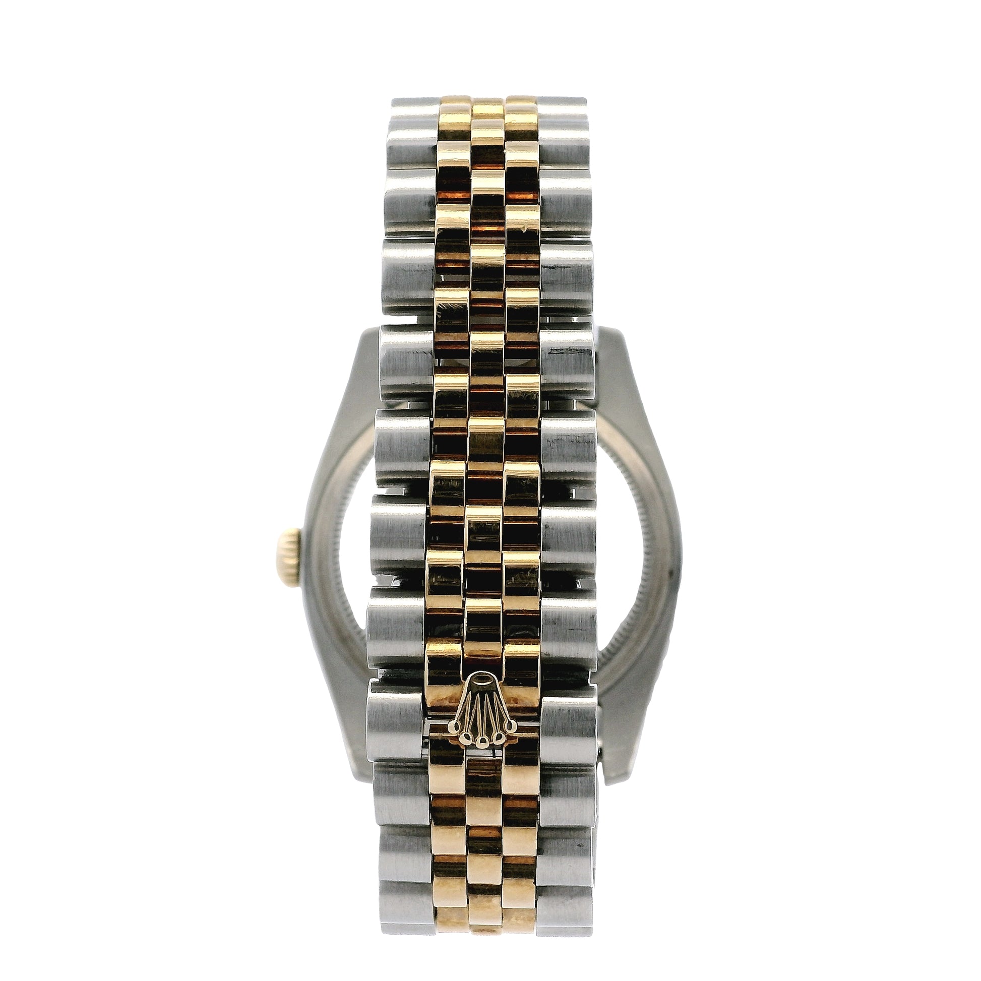 This stunning Rolex Datejust 116233 delivers the perfect blend of classic elegance and luxurious individuality. From the very first glance, the harmonious pairing of stainless steel and 18k yellow gold makes a bold yet timeless statement. Its 36mm case, crafted with Rolex’s renowned precision, is complemented by an eye-catching diamond-set yellow gold bezel that elevates the watch into a true showpiece.