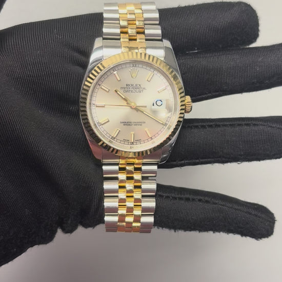 Rolex 116233 Datejust Two Tone 18k Yellow Gold Champagne Diamond Dial Watch