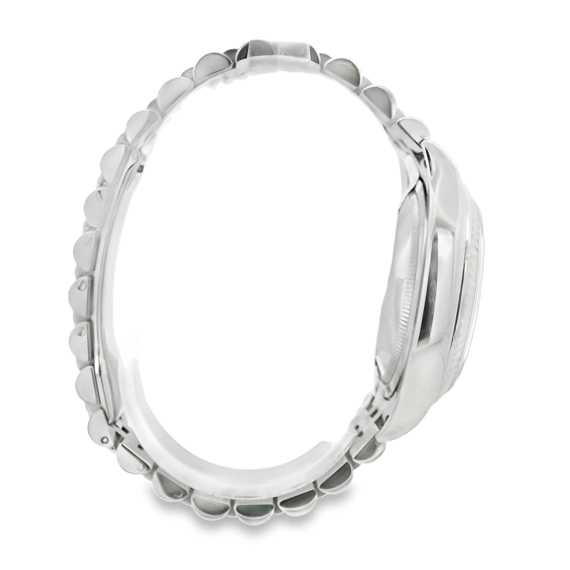 Command attention with the timeless elegance of the Rolex 116234 Datejust, a sophisticated 36mm timepiece that effortlessly blends sporty precision with refined luxury. Crafted from stainless steel and topped with a stunning 18k white gold fluted bezel, this model delivers iconic Rolex styling with enduring appeal.