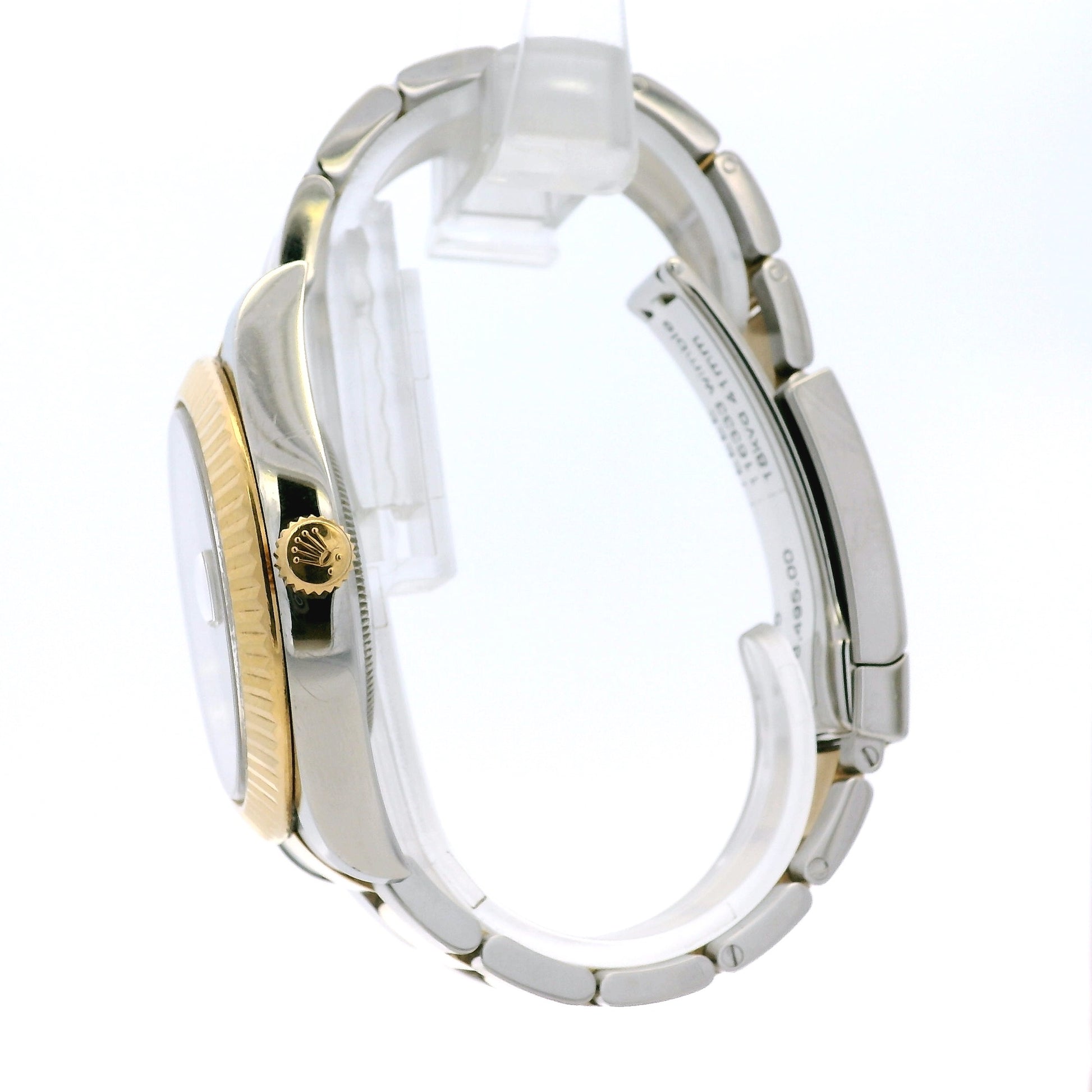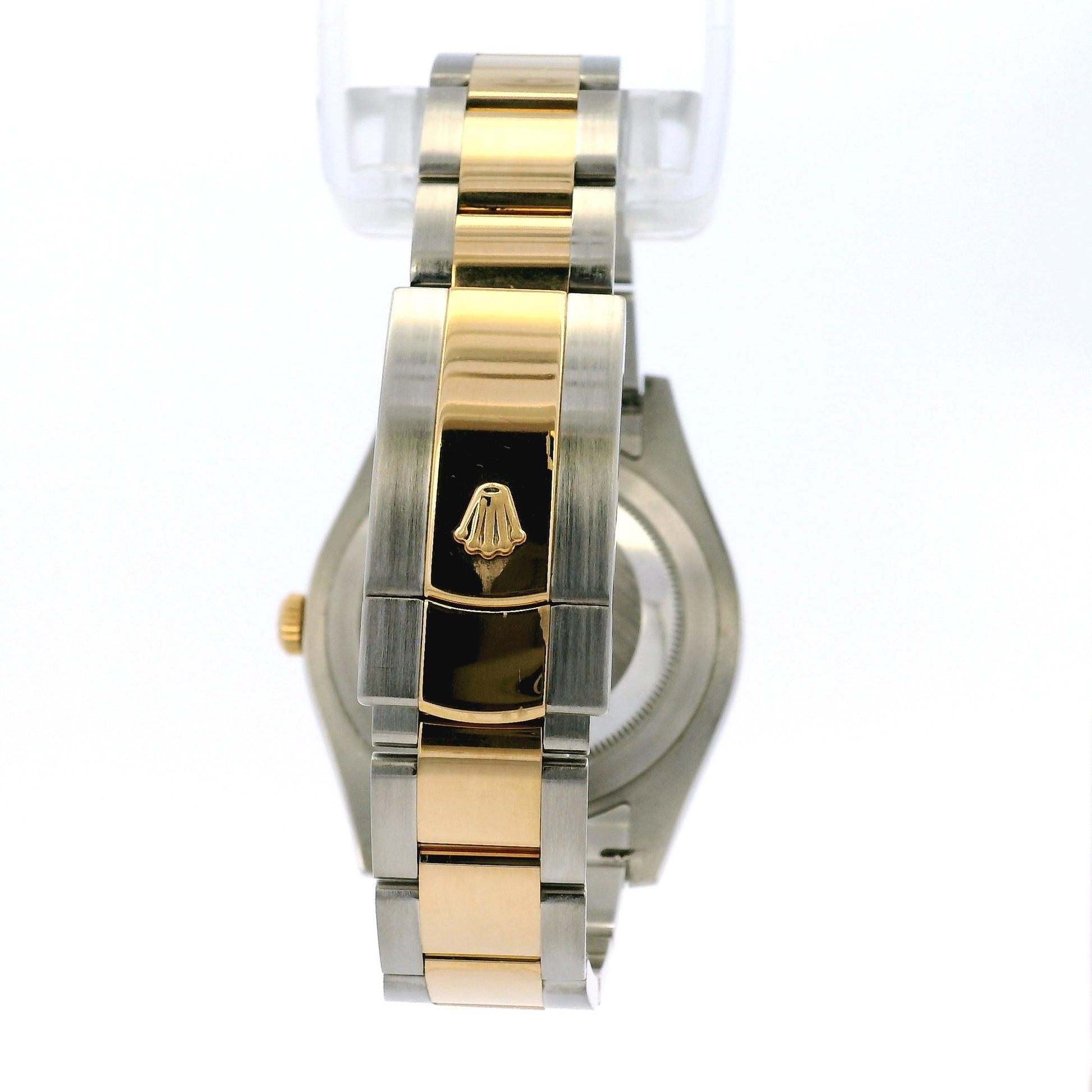 Crafted with a 41mm case in stainless steel and 18k yellow gold, this Datejust II features a sophisticated Wimbledon dial accented by green Roman numeral hour markers and gold hands, with a date display at the 3 o’clock position. The signature 18k yellow gold fluted bezel adds unmistakable Rolex character, while the sapphire crystal offers exceptional durability and clarity.