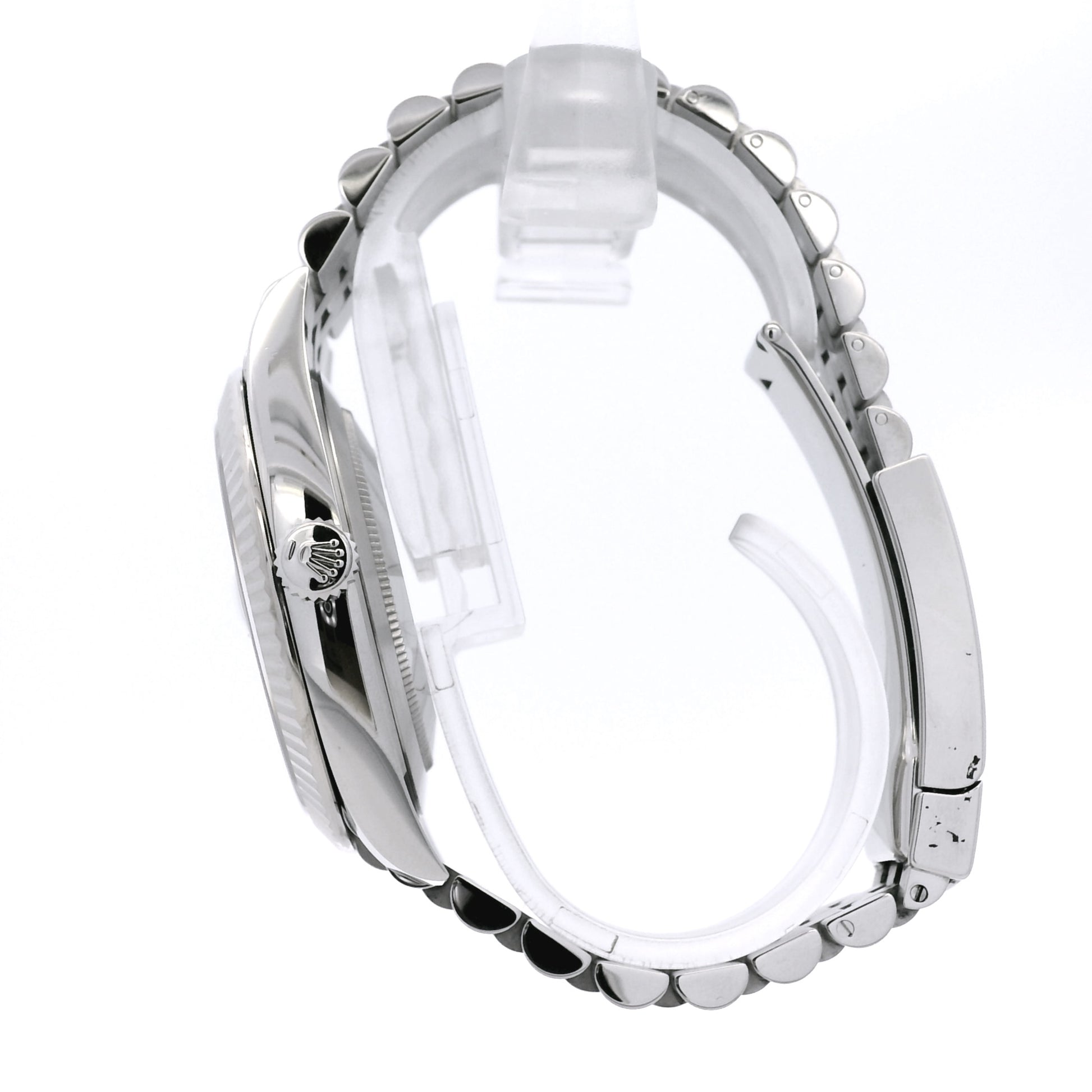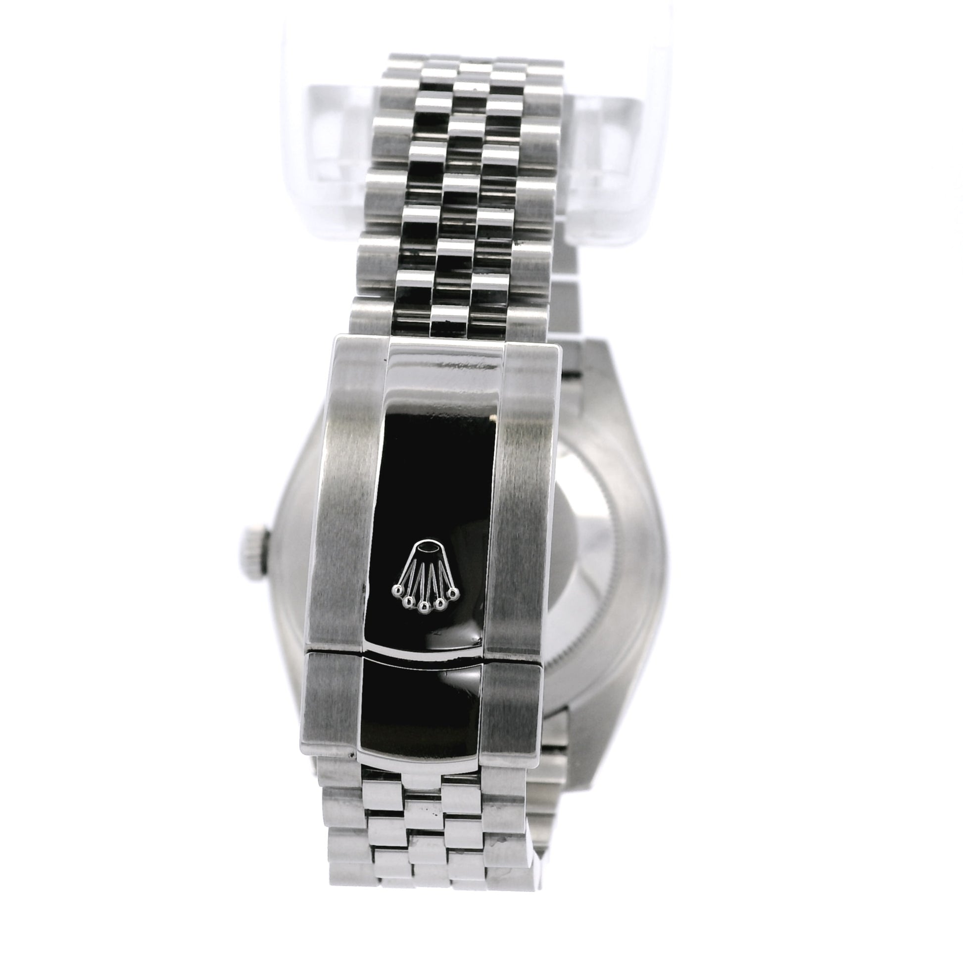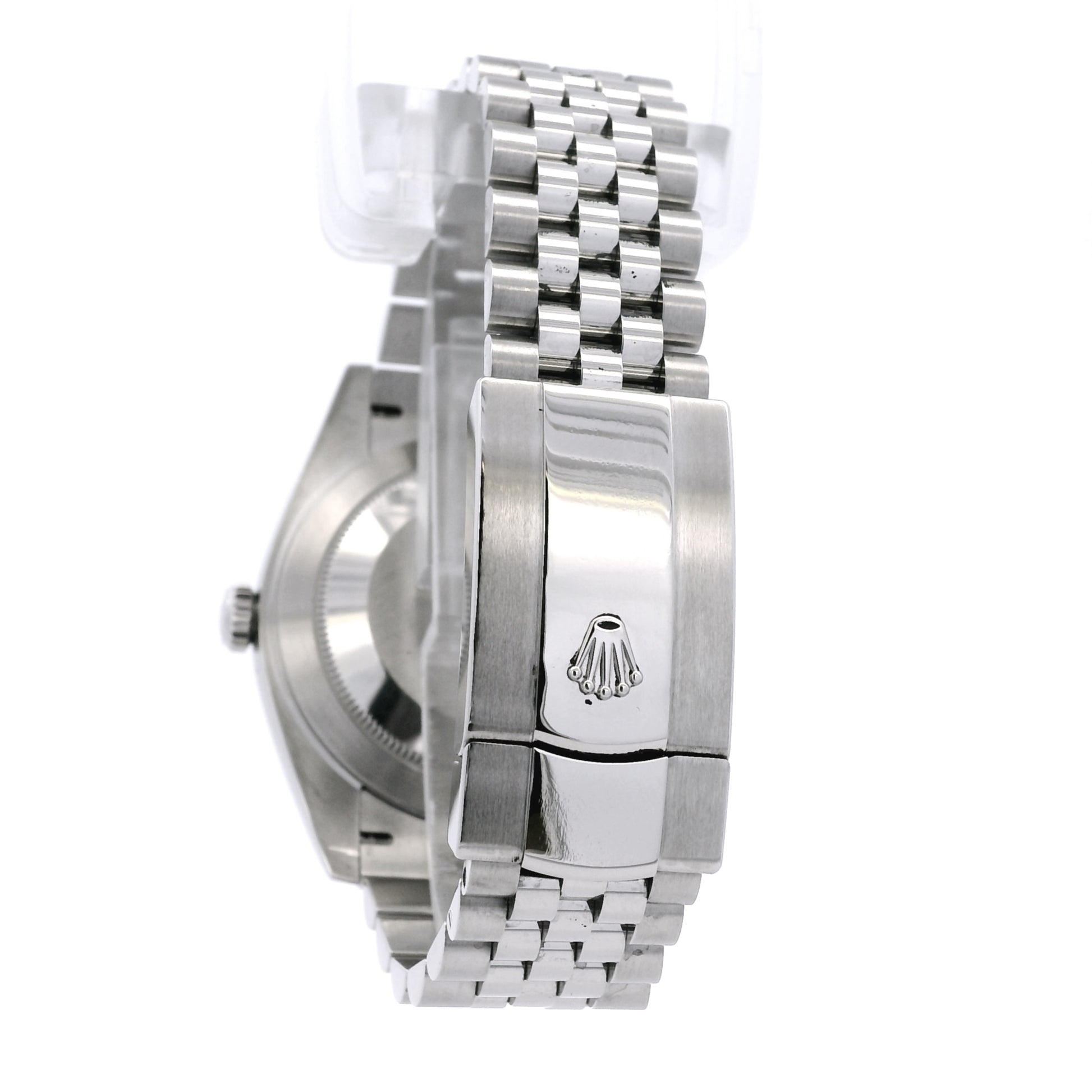 Powered by a reliable Rolex automatic movement, the Datejust 126334 offers precise timekeeping and long-term dependability. It is paired with a stainless steel Jubilee bracelet and a secure fold-over clasp, comfortably fitting wrists up to 7 inches.