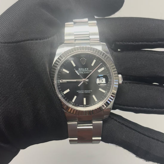 Rolex 126334 Datejust Black Stick Dial Fluted Bezel Stainless Steel Watch