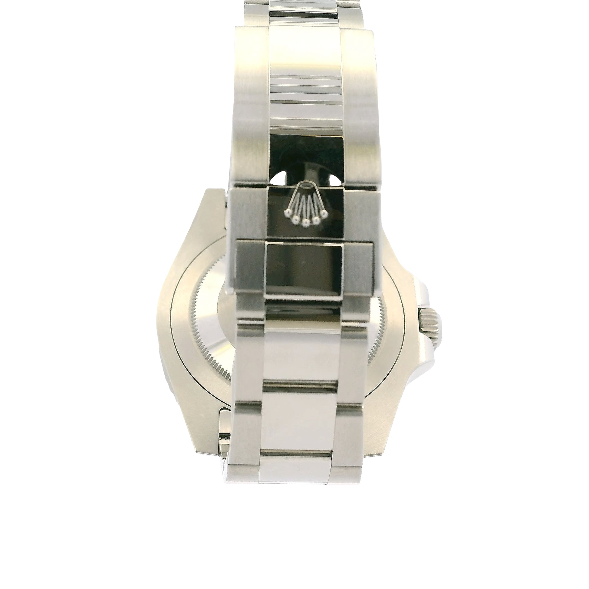 This model features a left-hand crown configuration—a rarity in the Rolex lineup—and a unique green and black Cerachrom ceramic bezel insert, setting it apart in both form and function.