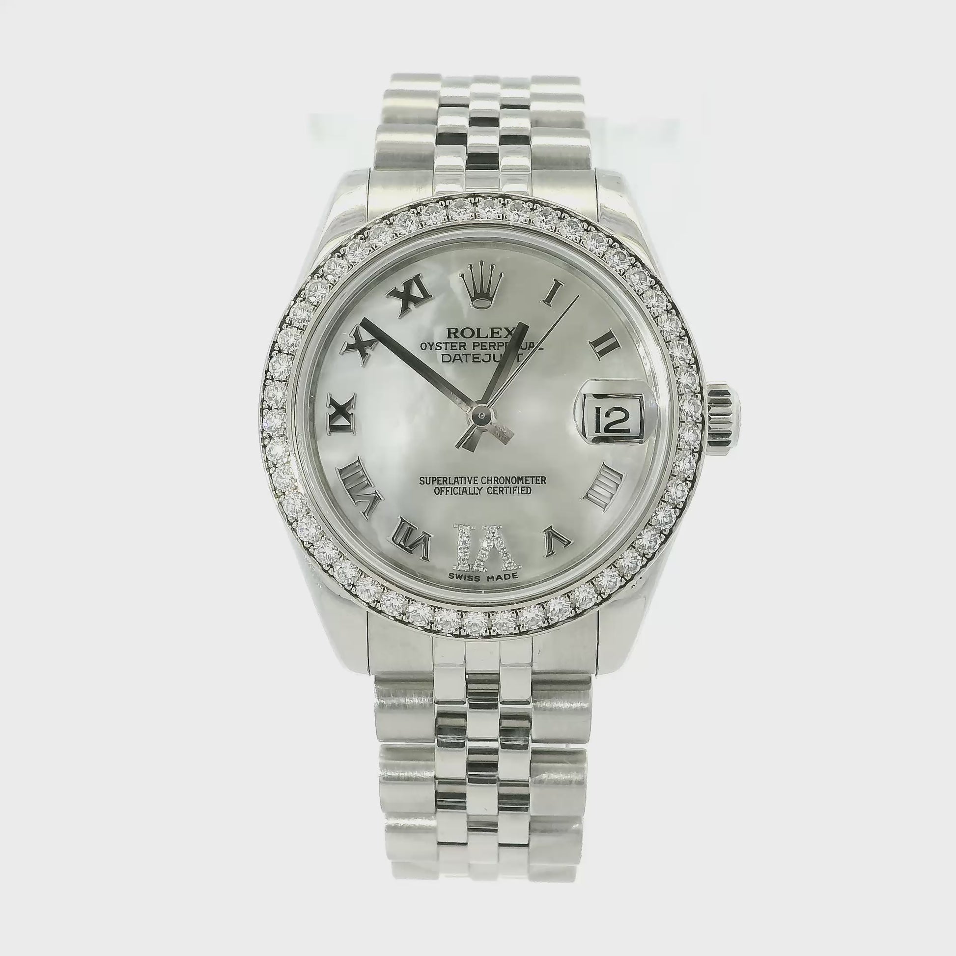 Shop the stunning Rolex 178384 Datejust 31mm Mother Of Pearl Dial and Diamond Bezel Watch. This stainless steel automatic timepiece comes on a Jubilee bracelet with original papers dated 2010 — in excellent condition and ready to ship!