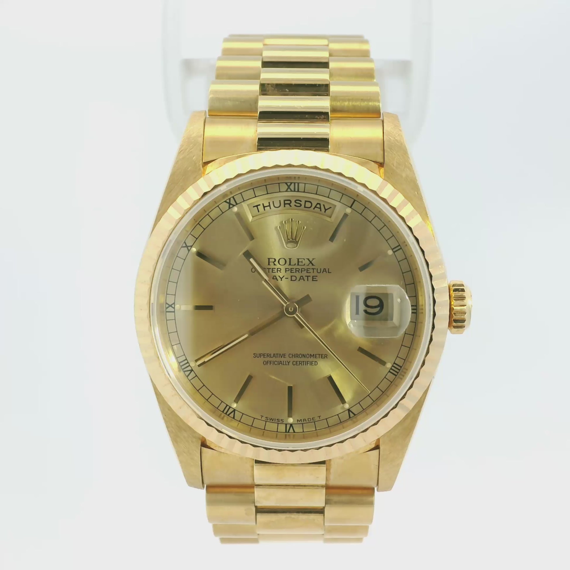 Rolex 18238 18k Yellow Gold Fluted Bezel 36mm Champagne Dial Watch