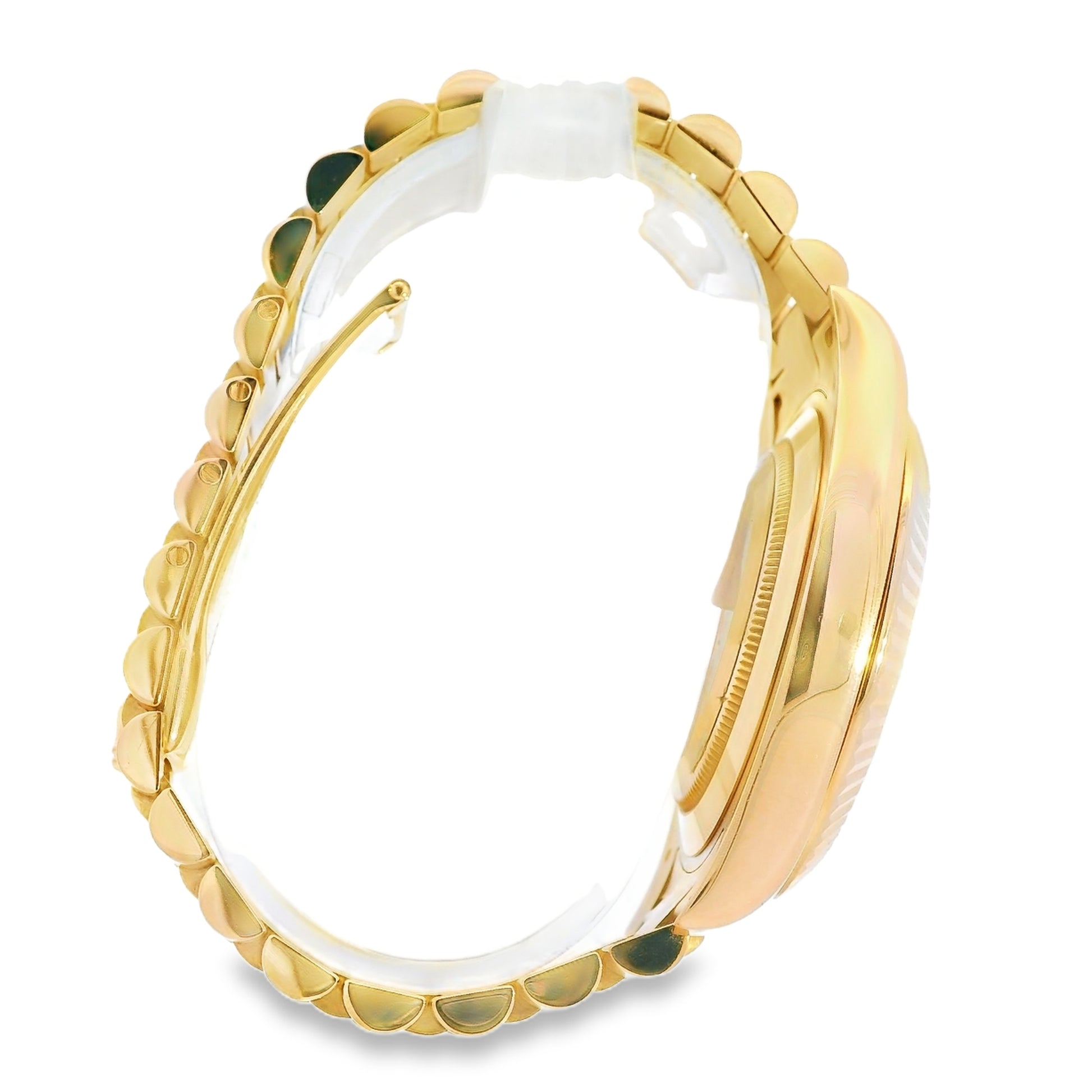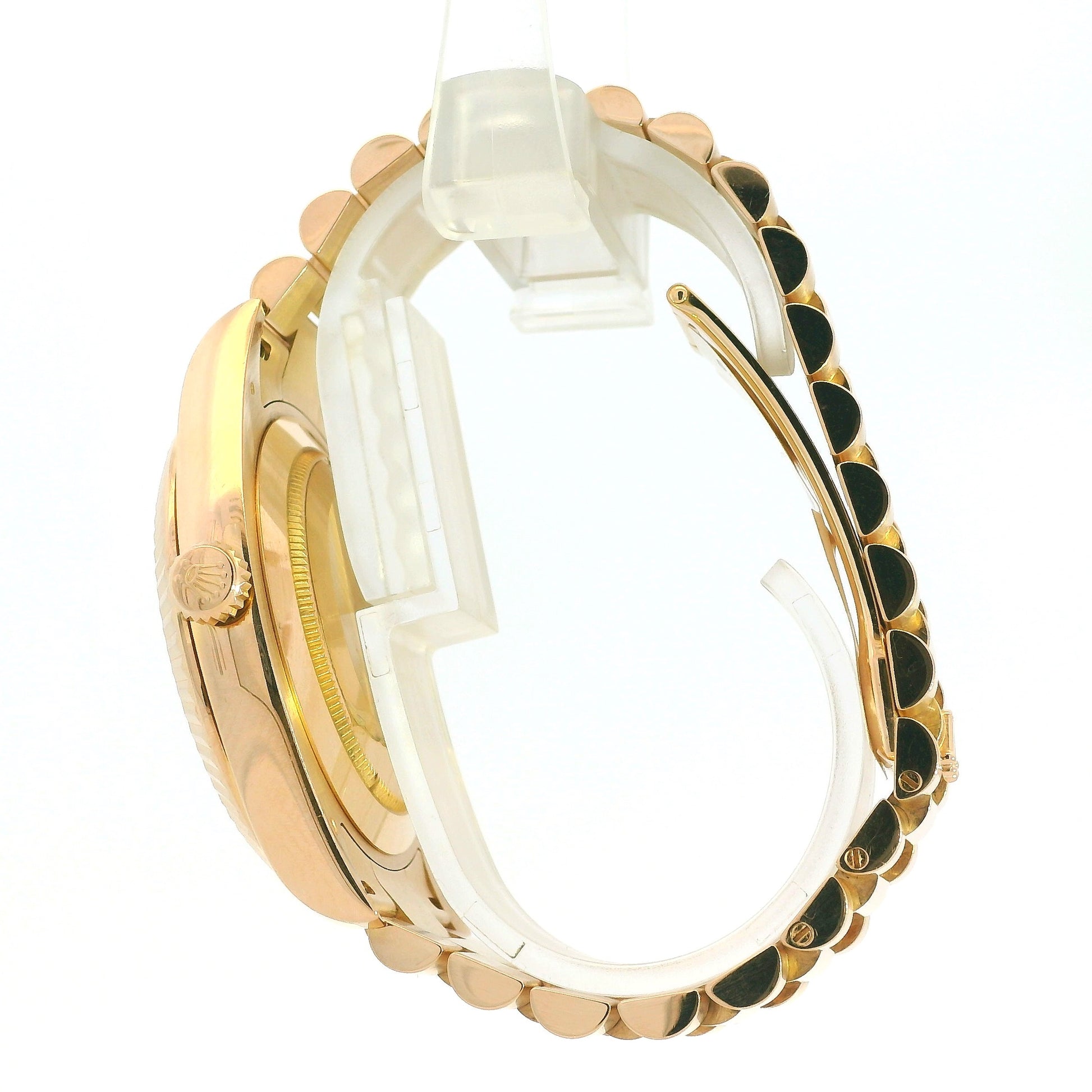Powered by Rolex’s automatic movement with a 48-hour power reserve, the watch delivers exceptional precision and performance. The solid 18k rose gold Presidential bracelet provides both comfort and timeless elegance, secured with a folding clasp for everyday confidence and durability.