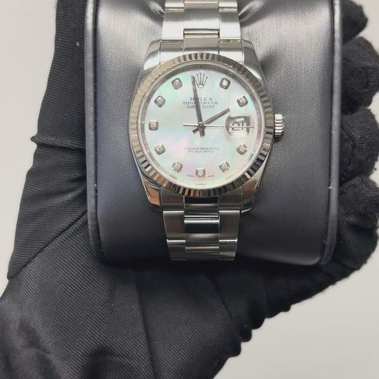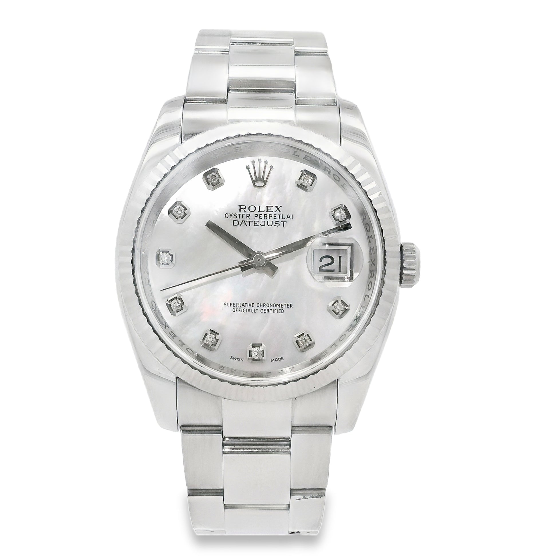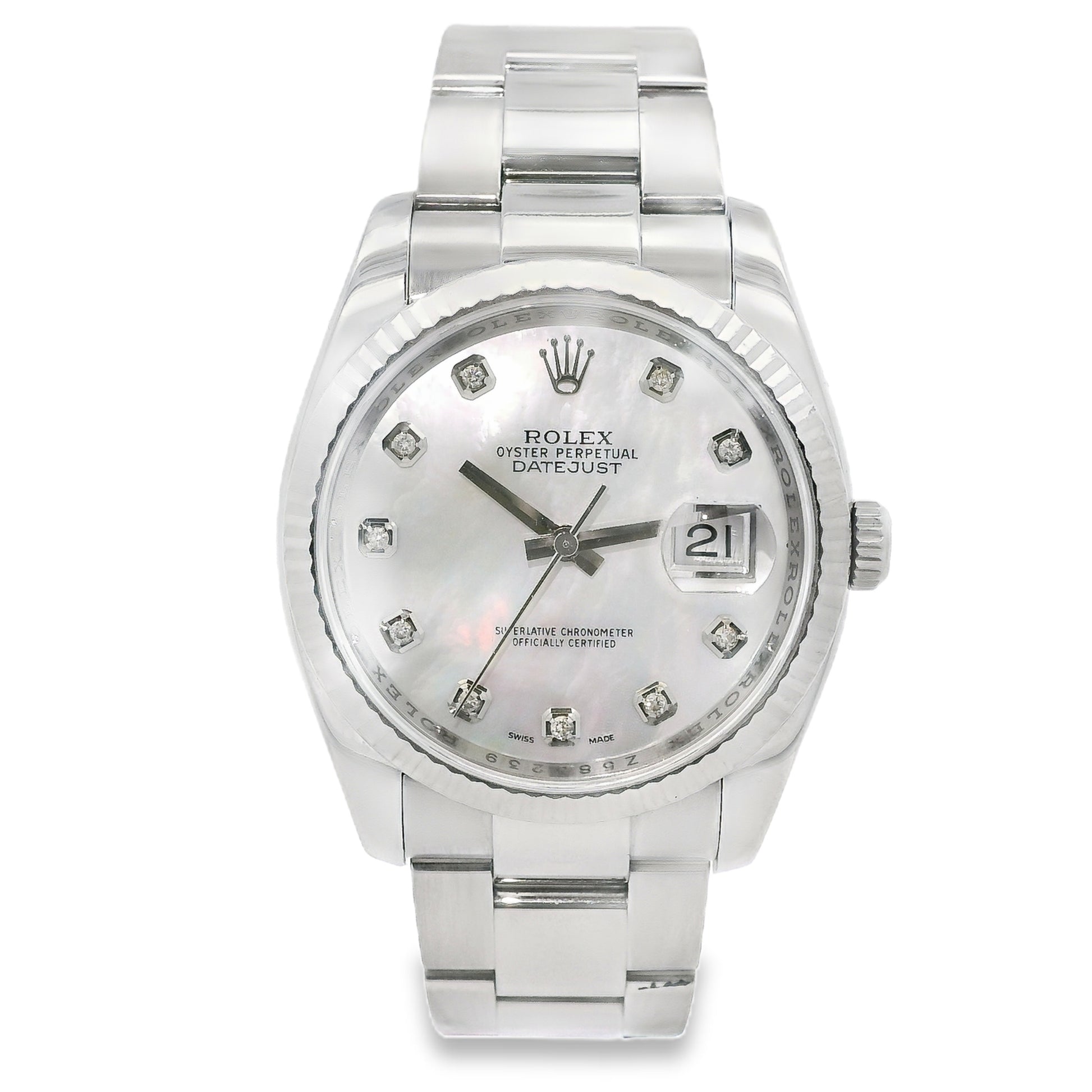 Rolex Datejust 116200 Stainless Steel 36mm Aftermarket Mother of Pearl Diamond Dial Watch