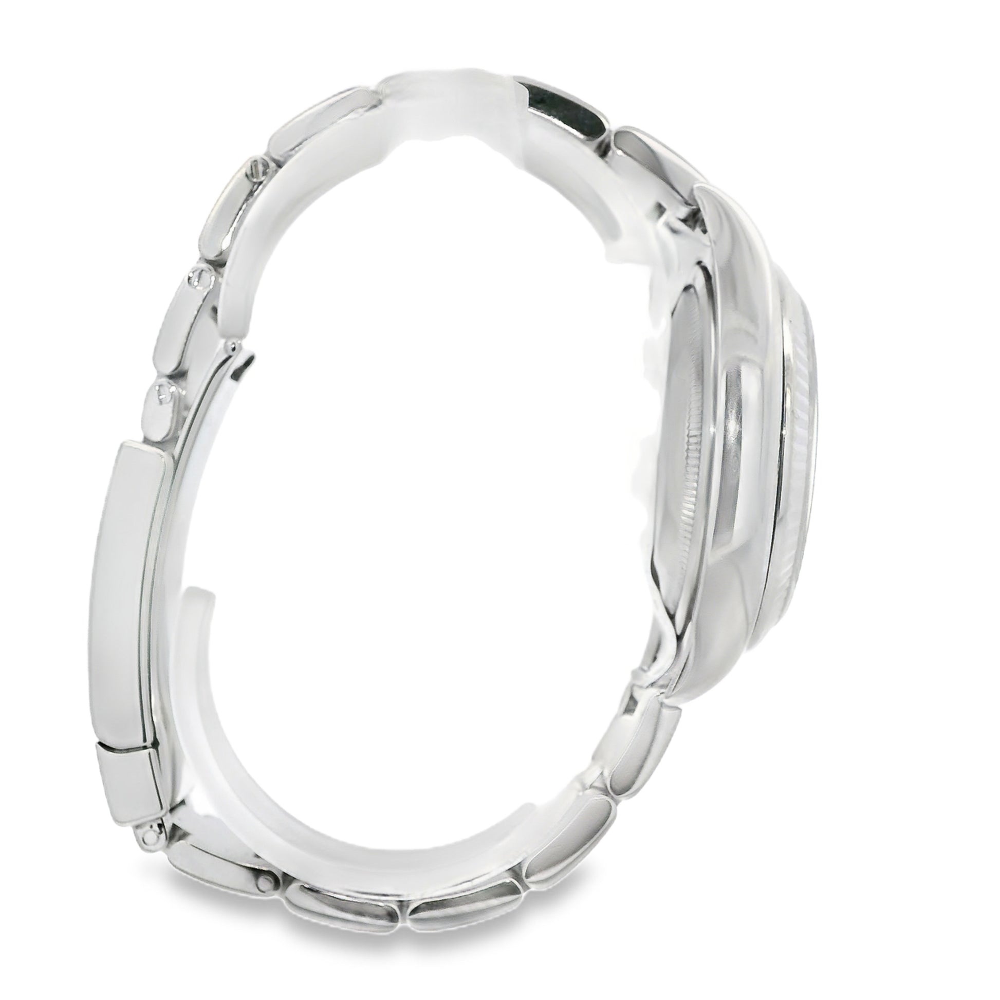 Framing the dial is a stunning aftermarket fluted bezel, adding an extra layer of brilliance to this already iconic design. The 36mm stainless steel case offers a sleek, classic profile, while the scratch-resistant sapphire crystal ensures lasting clarity and protection.