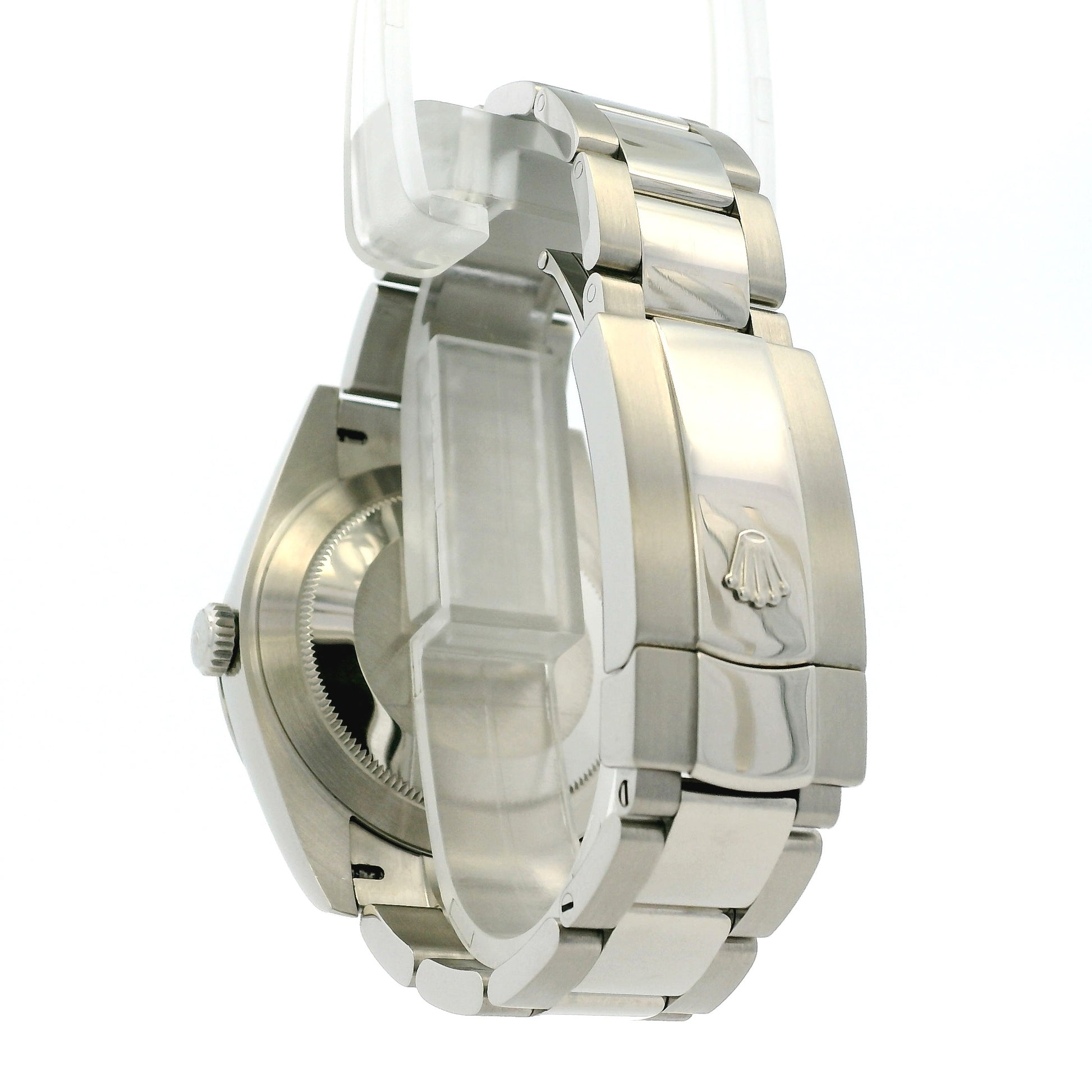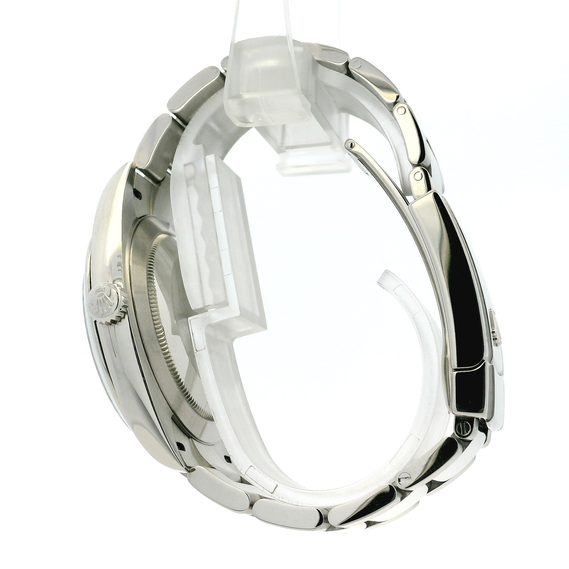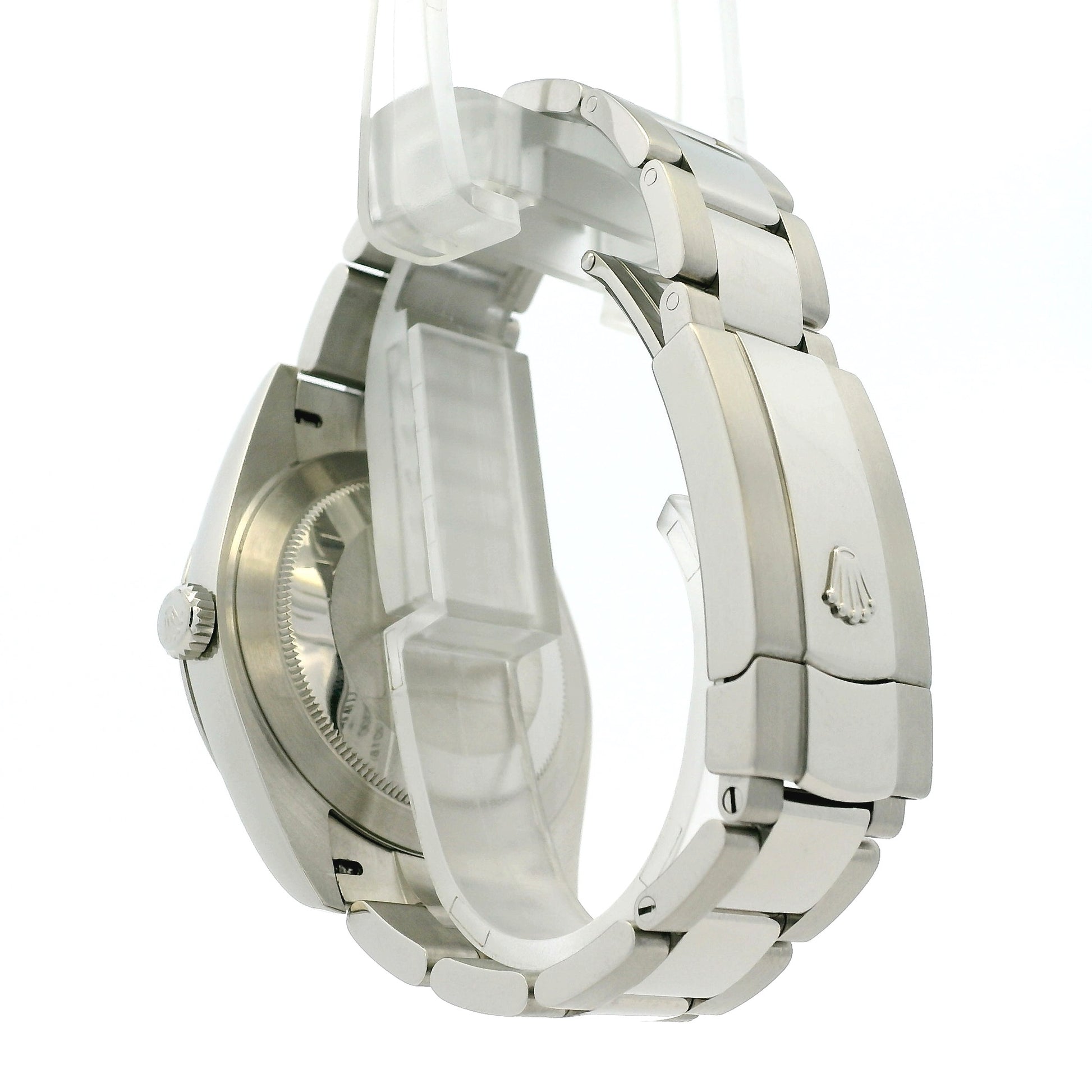 The watch showcases a refined silver stick dial with luminous hour markers and hands, paired with a smooth stainless steel bezel for a clean, versatile look. Powered by Rolex’s Caliber 3235 automatic movement, it delivers exceptional precision and an impressive approximately 70-hour power reserve.